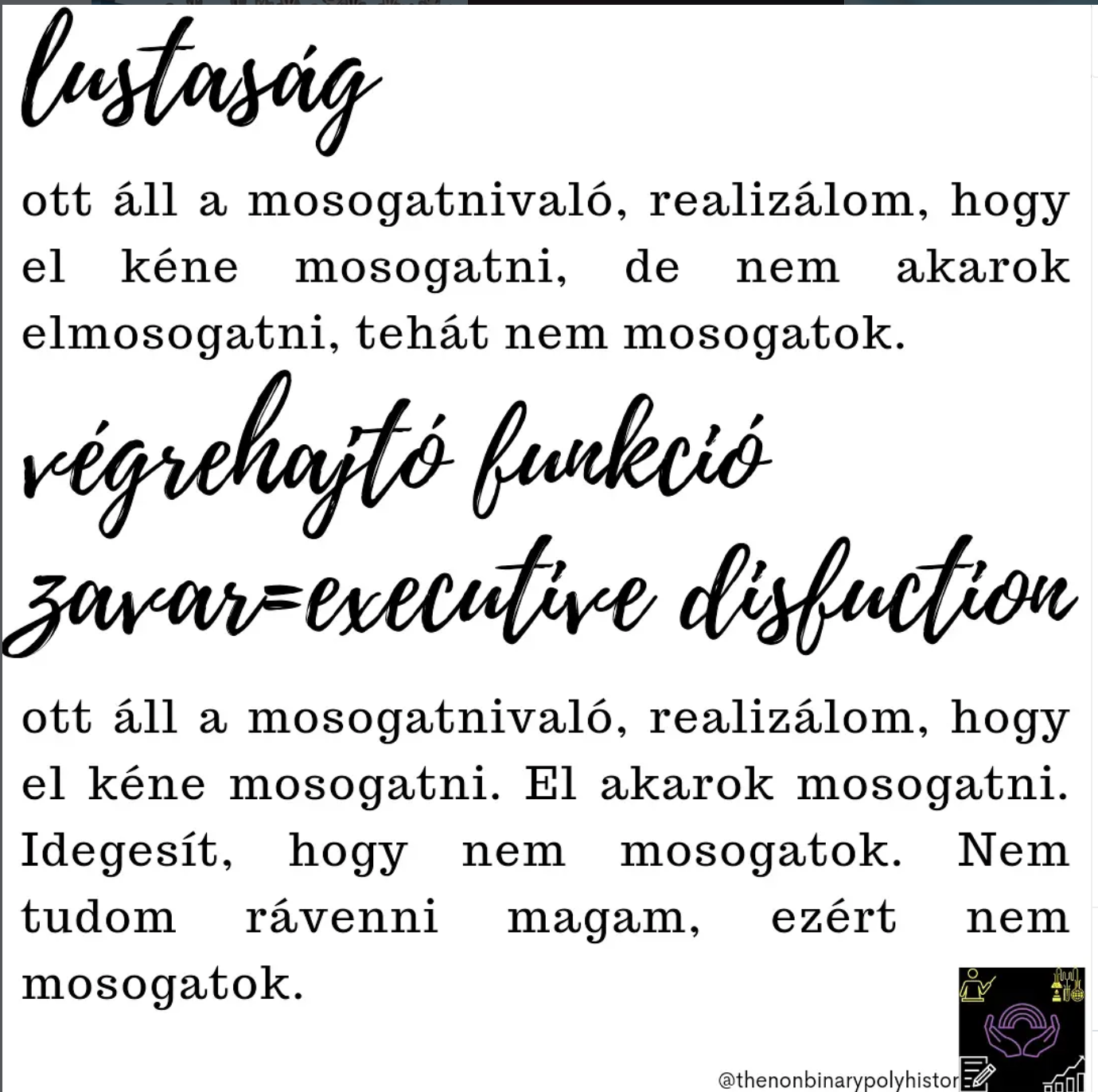 Nem lusta, hanem végrehajtási zavara van – ez a kedvencem, Singer Eddie nonbináris polihisztor frankón taglalta, hogy ő ezért nem mosogat. Hú, nagyon extra vagy!