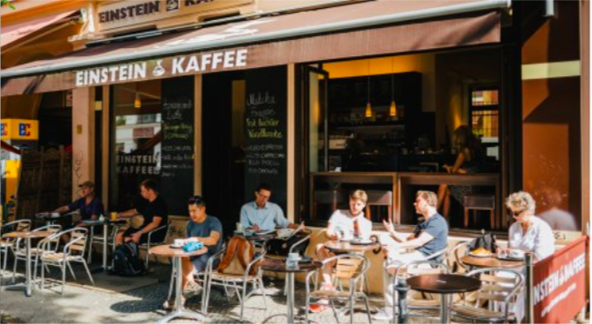 A vasárnap este, a verseny utáni búcsúszessön nagy élmény volt. Nem maradt nálam se víz, se telefon, se pénz, se térkép, lesz, ami lesz alapon, a célban viszont esélytelen volt megtalálni egymást. Ezért csak némi bolyongás, ismeretlenektől való telefonkölcsönkérés (áldott jó bizalom, segítőkészség!) után egyesültem a többiekkel, majd G-vel beültünk az Einstein Kaffeeba:
