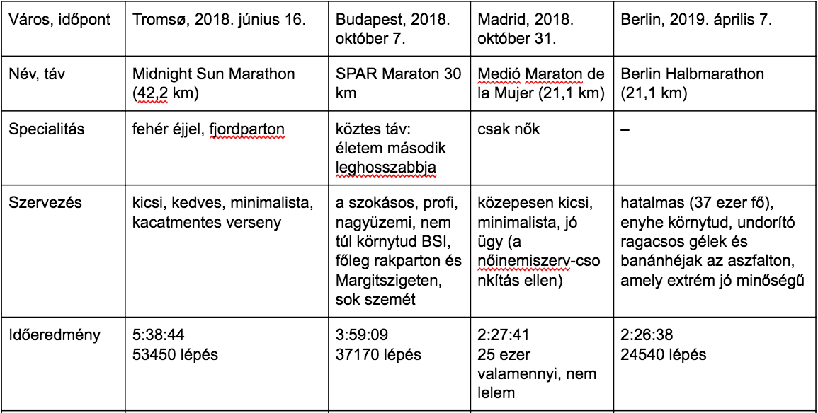 Összehasonlítom nektek – teljesen önkényes szempontok alapján – az utóbbi négy, komolyabb futásomat: