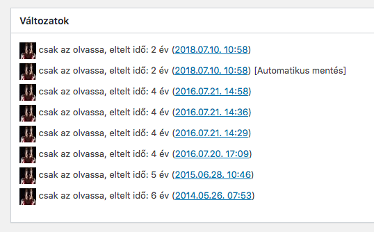 Ideteszem a szerkesztési előzményeket. Július 21. a megjelenés dátuma (ez a linkben is benne van), tehát hazudsz, amikor azt írod: a haláleset után, másnap tettem ki. Sokkal későbbi, és semmi köze hozzá. Mert összeraktam, mi ez a vád, miután ocsúdtam a döbbenetből, hogy ezek még mindig rajtam rugóznak. Emlékeztetnék mindenkit, hogy azon a július 14-én egy írófejedelem halt meg, aminél nagyobb gyászt én csak családtagjaim halálakor éreztem. Senki nem figyelte akkor Angéla életét. Én biztos nem. A poszt ötlete és lényege májusi egyébként, tehát (másrészt) sokkal korábbi. Itt vannak a szerkesztési előzmények: