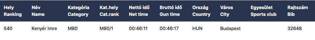 Életem legjobbját futottam én is, nálam ez 1:04:00 (tehát önálló tízes távon, mert tavaly tavasszal a nagy-tavaki félmaraton első tíz kilométere gyorsabb volt), és hát ma ideálisak voltak a körülmények, semmi kifogásunk nem lehetett: száraz, napos, kellően hűs idő, nincs szél, minimális emelkedő, továbbá macskakő és kanyar is alig, és szellős a mezőny (sajnos). Szóval ennyit tudok most, hatpercesnél is lassabbak a kilométereim, és 10640 lépés a vége, a célban kézen átfordulás. Még most is ennyit tudok, mondja bennem az, aki lesz majd 60 meg 75 éves is. Már Kenyér Imre The Legend sem fut félmaratont, 5 km-n indult. De itt van. Együtt futották: