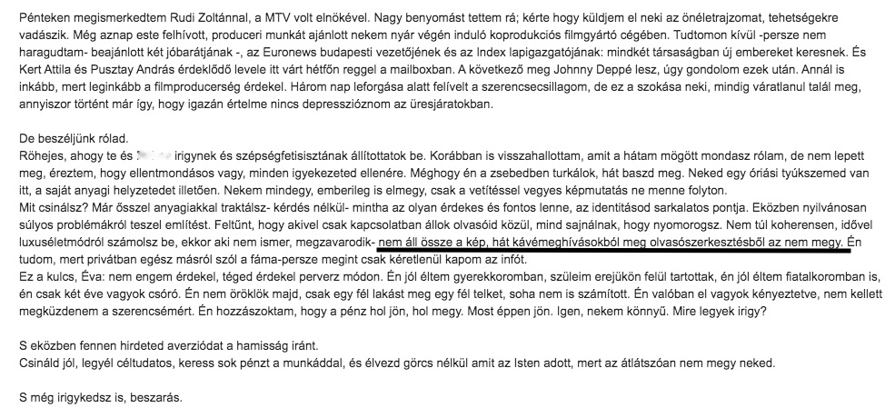 4. Egyik hozzászólásomban sem személyeskedtem, vagy próbáltalak felcímkézni. A “budai úrilány” kifejezést sok posztodban olvastam, ahogy írtad/nem írtad magadról. Iróniának szántam, nem pedig támadásnak vagy elemzésnek. Tudok a Villős és Kozma Szilárdos bullyingról, és értem, hogy ha ezek után érzékeny vagy az elemezgetésre vagy a személyed elleni támadásra. A hozzászólásomat kétszer küldtem el véletlenül (próbáltam az előzőt fejből visszaadni, nem sikerült). Az iPhonet, New Yorkot stb. nem dicsekvésnek írtam, hanem, hogy bizonyítsam, hogy nem az irigység beszél a részemről, kisarkított, rossz poén volt. Való életben nem úgy kezdem a beszélgetést, hogy mutogatom, hogy mim van.