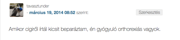 “Mi micsoda még, és meddig az? Vagyis, amikor én a 22/2 vagy 20/4 óra szerint eszem, ami nem is mindig terv, hanem így alakul, és olyan nagyon jólesik és egész napi adagot, vagy hát ki tudja, betolok, és közben mit tudom én, hogy mások mennyit ennének egy ilyen helyzetben, annyi edzés után, pont ilyen anyagcserével… ez is az?”