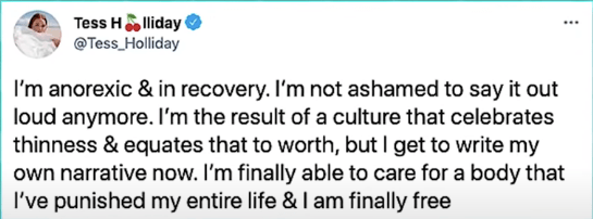 Képzeljétek, hogy a pocsolyán túl addig tolták az érzékenykedést meg a hisztit, meg tapostak el minden józanész-véleményt, hogy az amerikai nők ezt tömegesen beszopják, és mindenhol szalagcím lett a szegény, szenvedő Tess… aki olyan helyzetbe hozta magát, hogy ha öt vagy tíz kilót fogy (nem tudjuk, amúgy 135 körül van, 300 font), akkor magyarázkodnia kell a dühödtkövér követői előtt, akiknek ő ugye ikonja, ő nem fogyhat, mert akkor elárulta őket és az #effyourbeautystandards ügyet. Ez az egyetlen egérút: SZENVEDEK! Anorexiás vagyok! De már vége!