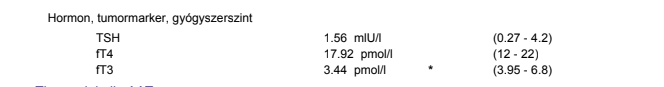 (Az igazi para a thyeroglobulin AAT érték volt, ez a (túl sok) pajzsmirigyszövet lassú szétesése nyomán változik, 0-115 lóerő per dioptria között normális, az enyém héátszázsok meg 894 volt. Nézettük, nem tumor. Ma már csak 400 körüli, és csökken.)
