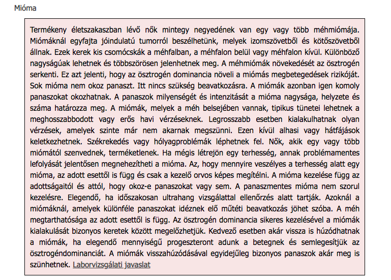 A mióma pedig egy jóindulatú, hormonfüggő állapot: az ösztrogéndominancia okozza (a progeszteronhoz képest domináns), nem lesz belőle rák, és az ösztrogén csökkenésével múlik el. Általában nem okoz panaszt. Ez egy alter megközelítés.