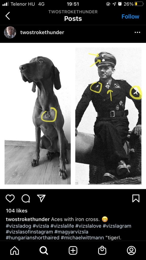 Mert a legmenőbb: az első, de különösen második világháború haditechnikája, a gépesített mészárlások, gránátok, tankok, légierő. Ezek már echte nácik, csak nem merik mondani, nehogy kirúgják őket a munkahelyükről vagy elváljanak tőlük. Pontosan tudják, hogy kell és lehet erről a neten is kommunikálni úgy, hogy ne jelentsék őket, de a hasonlóak felismerjék bennük a cinkost. Akár jelvény, egyenruha, akár vadászgép, a szövetségesek holmijai iránt sosem mutatnak érdeklődést.