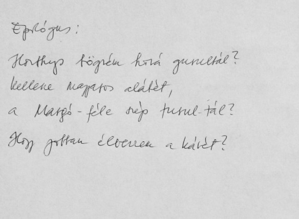 Most, egy kötet szerkesztésekor nem volt kedvem odafigyelni, slendriánul firkantottam fel magamnak a fejezeteket, ezek épphogy olvashatóak, de nem volt megformálva külön minden betű nyomtatásszerűen, főleg az ékezetek elnagyoltak. Most jöttem rá erre. Hogy ez szabadság, nem büntetem már magam a túl sok melóval. Megengedem magamnak, annyi esztétikai okból újrakezdett jegyzet, óravázlat és levél után (egy betű rontása miatt írtam újra az oldalt!).