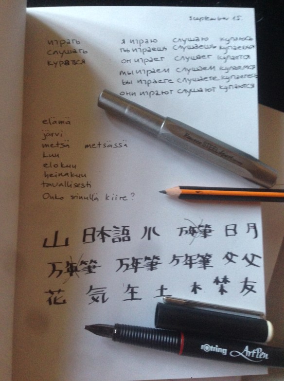 Ja és a kis sznob mániám, töltőtoll, újabban az is acél. Mindig fekete tintával. Két műanyag LAMY, a rikítózöld meg az átlátszó. És két fém Kaweco: Sport és Lilliput.