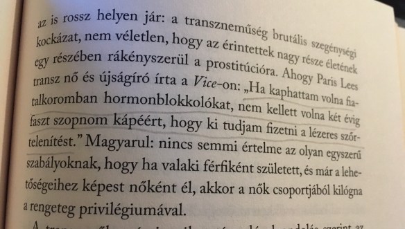 Biztos lehetsz abban, hogy a prostituálttá lett transzneműek rejtélyét illetően nem ebben a könyvben és nem is Márton Jocinál lesz a megfejtés. Nekik nem a megélhetés a tét (mint sokaknak), hanem a kozmetika, műtétek, olyasmi, amire normál bérért dolgozó nőnek-férfinak sincs pénze. Talán nem kellene ekkora általános nyomorban ezzel műsorozni.
