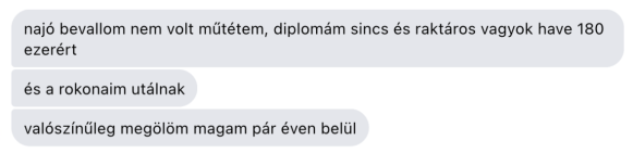 Engem felháborít, hogy ilyen nemtelen eszközökkel, nemlétező elnyomást lobogtatva csikarnak ki szimpátiát. “Sérülékeny”, “marginalizált”, “öngyilkos”. Hagyjátok már abba. Ezer gondja-baja van mindenkinek, ti meg a festett hajatokat mutogatjátok.