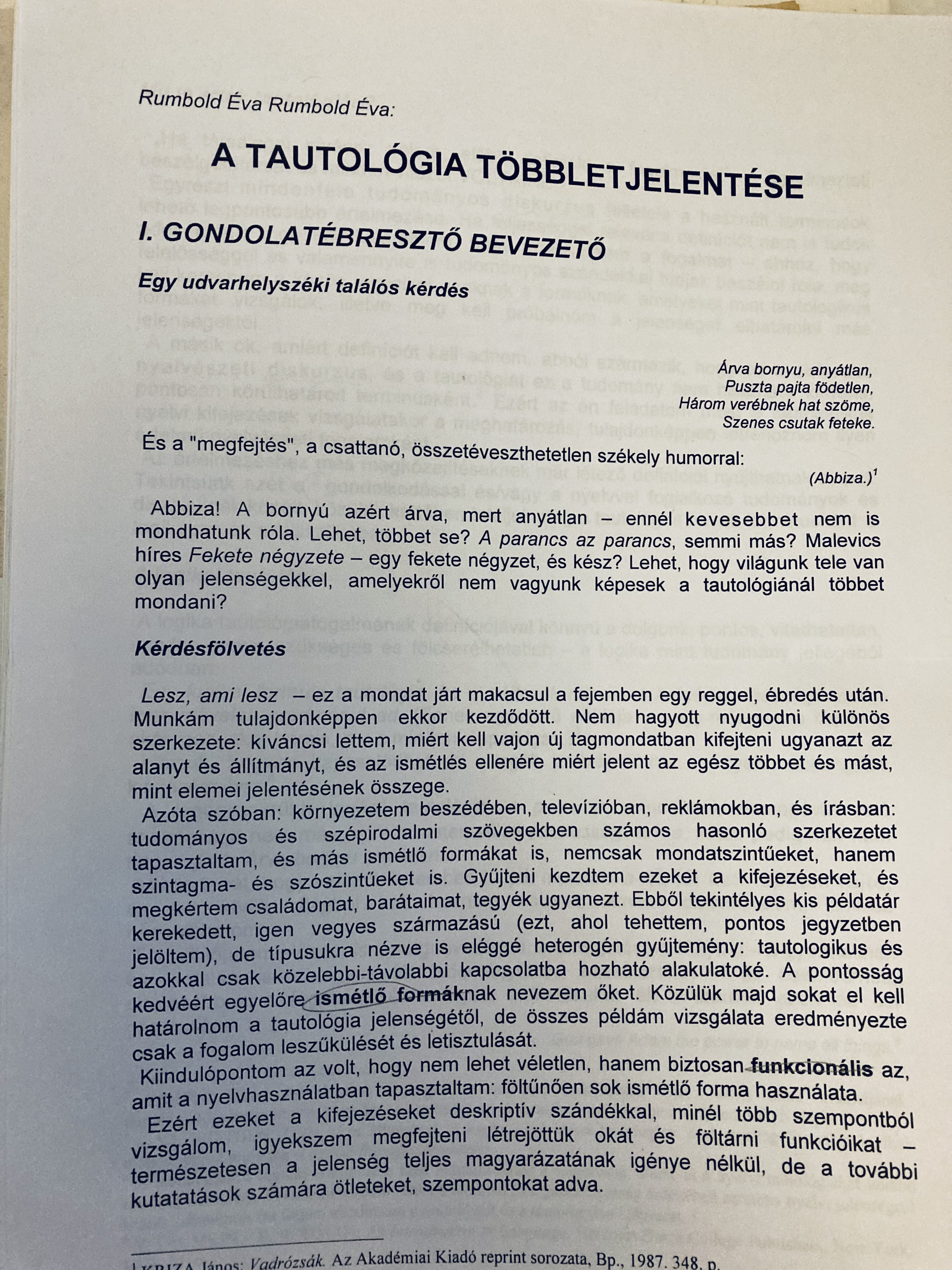 Egy kis nyelvfilozófia, ez már komoly folyóiratba ment, másodéves koromban írtam. Némi szellemeskedéssel, illetve: föltűnően, jézusom!