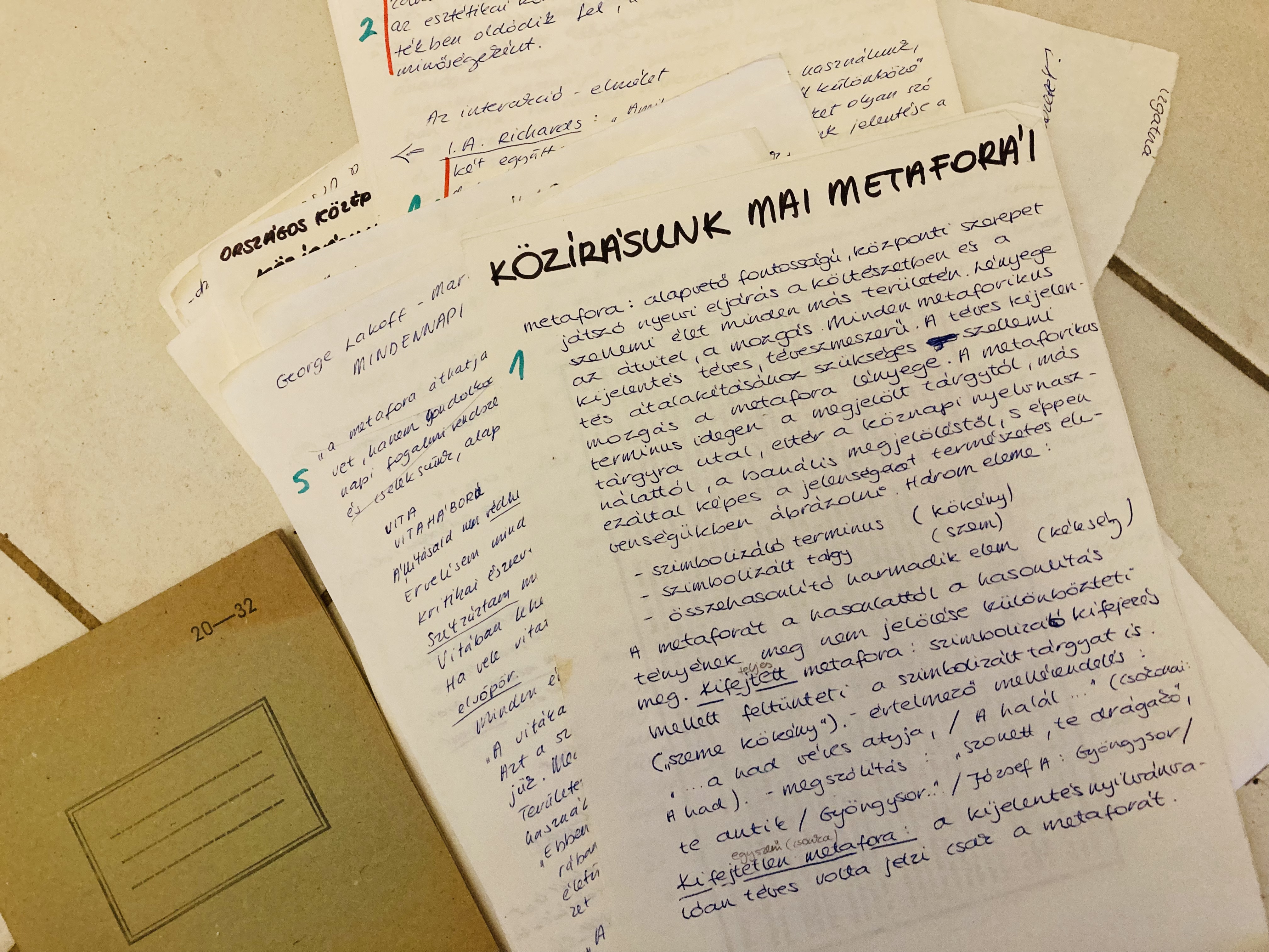 Mindenesetre lassan számolom fel a dobozok tartalmát. Megrendítő és megterhelő a múlt, nem bírok el egyszerre sokat. A 12 éves koromban forgatott eszperantó nyelvkönyv látványa! Az első OKTV pályamunkám kézírásos vázlata, jegyzetei 1992-ből. Fájdalmasnak érzem most azt a golyóstollat.