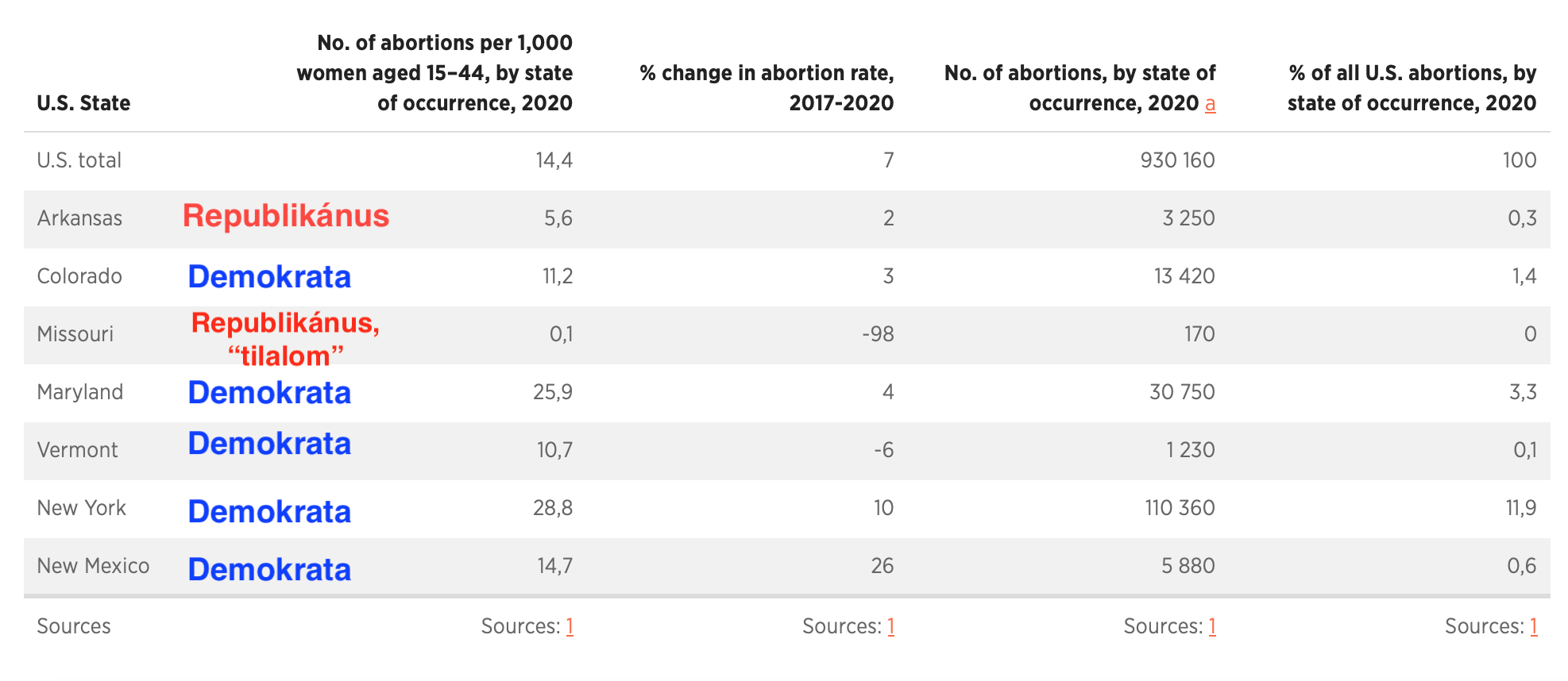Az abortuszráta változása másért is trükkös adat, mert költöznek vagy abortuszra mennek más államokba a nők.