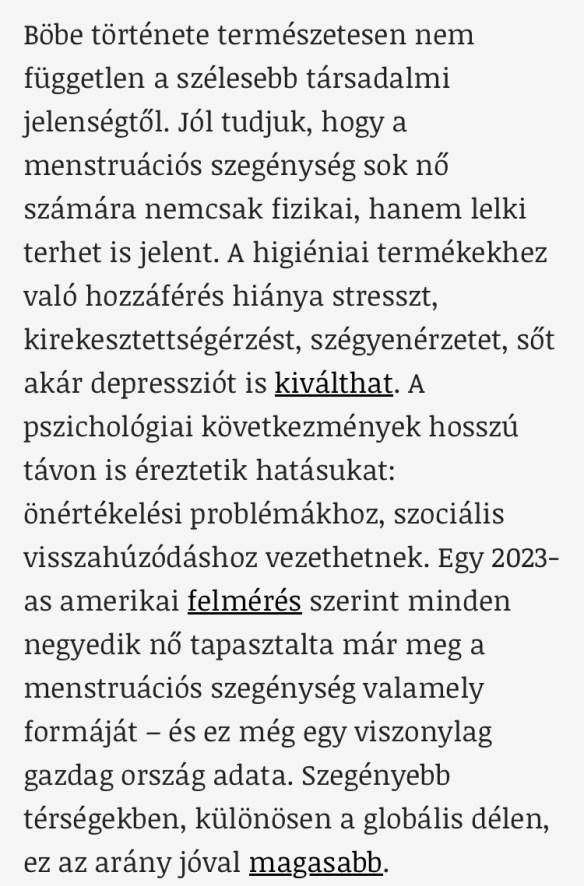 Frissítés 2025 május 30-án. A 444-en elérhető SzabadNem blogon egy férfi, “Alíz” taglalja a menstruációs szegénységet.