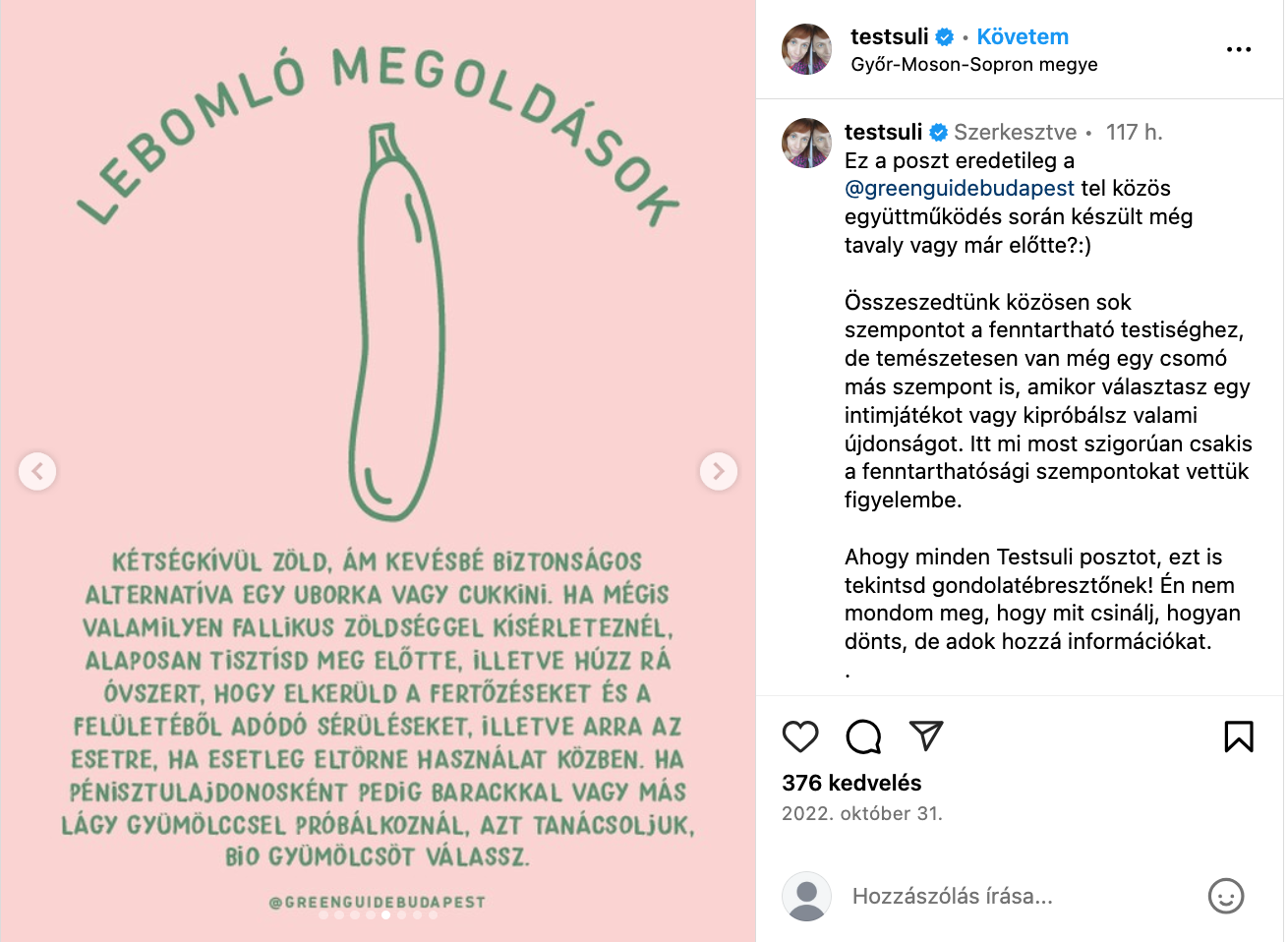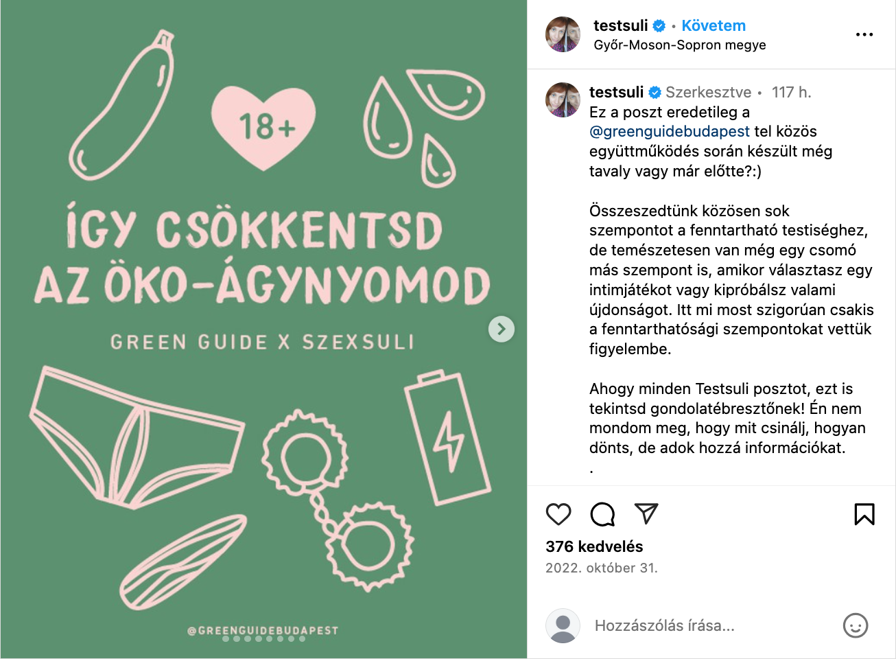 Képzelem, ahogy ezek ülnek, és “összeszednek” egy csomó szempontot a másik kedvenc kamujuk, a környezetvédelem ügyében. Fenntartható testiség! És ezt munkának nevezik!
