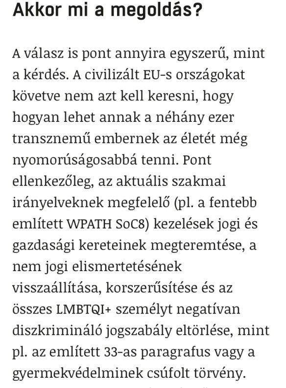 Az Orbán rendszer az olyan (tájékozatlan)emberek igényét szolgálja ki mint te vagy, tehát megvétózta a nemváltást, a hormonkezeléseket, és a műtéteket.