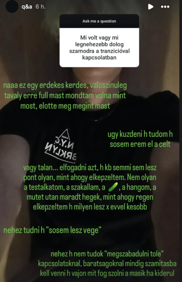 Bármilyen hormont, gyógyszert, akár pubertásblokkolót is szerezhet és használhat feketén bárki, ez nem a darknet még, csak egy bankkártya kell hozzá. Két kattintás megtudni, honnan lehet és mit érdemes. Nekem Hegedűs Bálint “Antónia”, a Háttér aktivistája árulta el a linkeket, amelyek köztudottak discordon. Nem kevesen kísérleteznek magukon már kamaszkorban, ellenőrizetlen szerekkel és adagokkal, “olyan erős a diszfóriájuk”. Nagy lufifejük lesz, és csúnyán elhíznak.