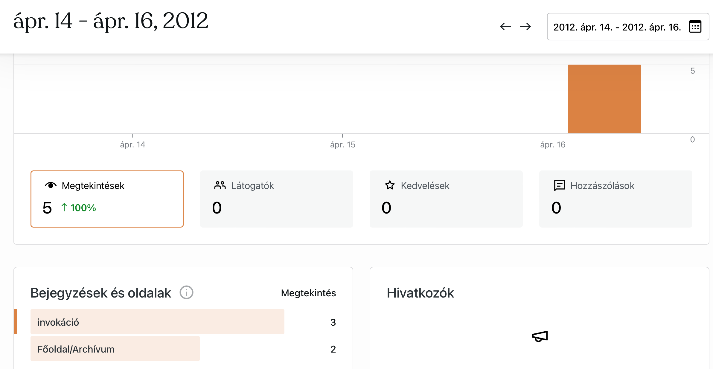 Az invokáció című poszt közzététele. Látogatottság (csak a külső kattintások látszanak, a bejelentkezett szerkesztőé nem):