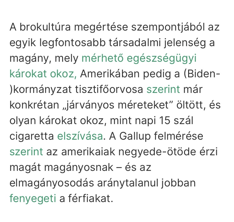 Én egyébként elítélem azt a sunyi, jópofáskodó médianyomást, amellyel rávették fiatal emberek tömegeit arra, hogy ne akarjanak gyereket, családot, felelősséget vállalni és komoly kapcsolatot se. Ez árad mindenhonnan, rávetik magukat arra, aki egy női csoportban terhesen arról beszél, hogy összekapott a férjével. Inkább kimenekülnek ebből, és elvannak a kis női dolgaikkal.