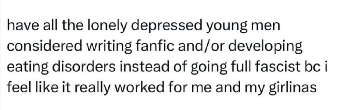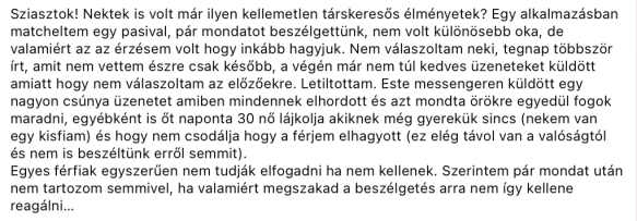 Itt egy szívszakasztó vallomás. Az eredeti bejegyzést – amire ez a komment reagál – egy nő írta. az áll benne, hogy akinek a nagyfenekű nők tetszenek, vagy a vékonyak, azok randizzanak olyannal, de ne basztassák már a partnerüket, hogy miért nem ilyen-olyanabb a fenekük, alkatuk. Előlép egy áldozat: