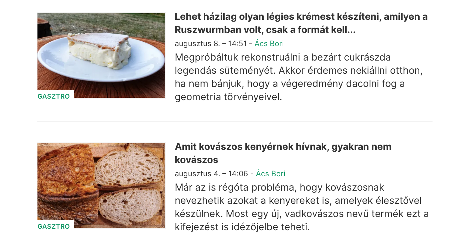 Ács Bori évek óta kizárólagos szerzője a gasztrotémának, szakácskönyve is jelent meg. Az említett szénhidrátdömping mellett (senki ne dőljön be: a csicseriborsó is az:)