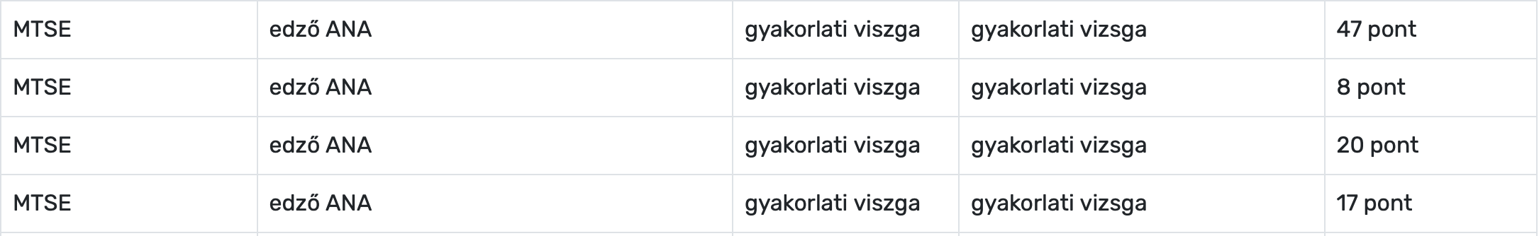 A gyakorlati vizsgán számít az atletikus (ugró, dobó, futó) képesség, az 90 pontot ért. A max. pontszám 200.