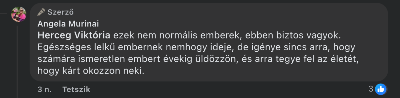 Ha ez fáj, sérelmet okoz, “bullying”, akkor az a tanulság, hogy nem kell belém kötni. Soha nem kezdeményeztem ilyen harcot magánemberrel szemben, a közszereplőknek pedig a közt használó, publikus megnyilvánulásait bíráltam, és az eltelt évek is mutatják, hogy igazam volt. Abból nem lett jó élet, ami mellett ők kardoskodtak, ellenem uszítva. Se Kozmának, se Angélának, se Villőnek, se Szentesinek. Nem lehet tovább hazudni. És már halottak is vannak.