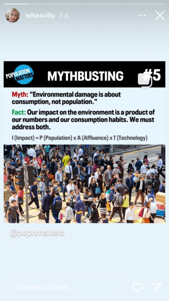 Akárhonnan vágsz ki 101 színvonalú statisztikákat, instás ideológiai sulykolást, mindenki tudja, mi bajod, mi ez a kielégületlenség, éretlen egoizmus, miért kevered a személyes döntést a globális folyamatokkal. Tudják, hogy annak, amit sulykolsz, semmi köze az igazán felelős, kíméletes életmódhoz. Inkább a gyerekes dac látszik: ha nem úgy működik a világ, mint az ideológiai illúzióidban (vagy Mérő Veráéiban, Peruintfalvi Ritáéiban, Bodon Juditéiban stb.), akkor az egész világ szar. A többieknek kellene máshogy élnie (esetleg nem is élnie) a te depressziód miatt, és hogy beteljesítsék az elveidet.