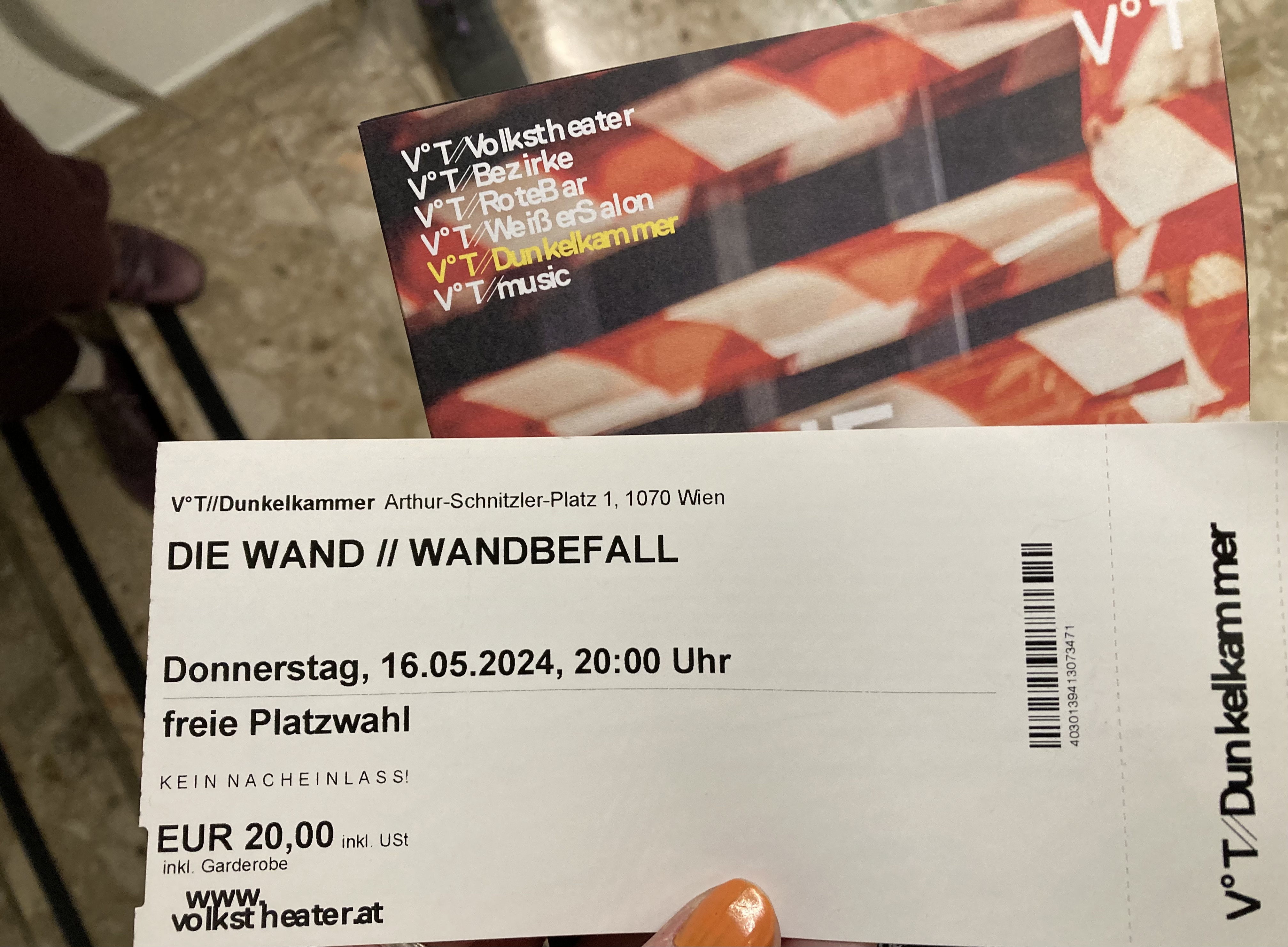 Május 15-17. Bécs: bolhapiac, Duna-sziget, kávéházi élmény, némi villamos és sok gyaloglás. 16-án Volkstheater, Elfriede Jelinek szövegeiből előadás három színésszel. Megdöbbentő zárlat és taps: az egyik színészt a csíkos terelőszalagokkal rögzítették és a színen hagyták.
