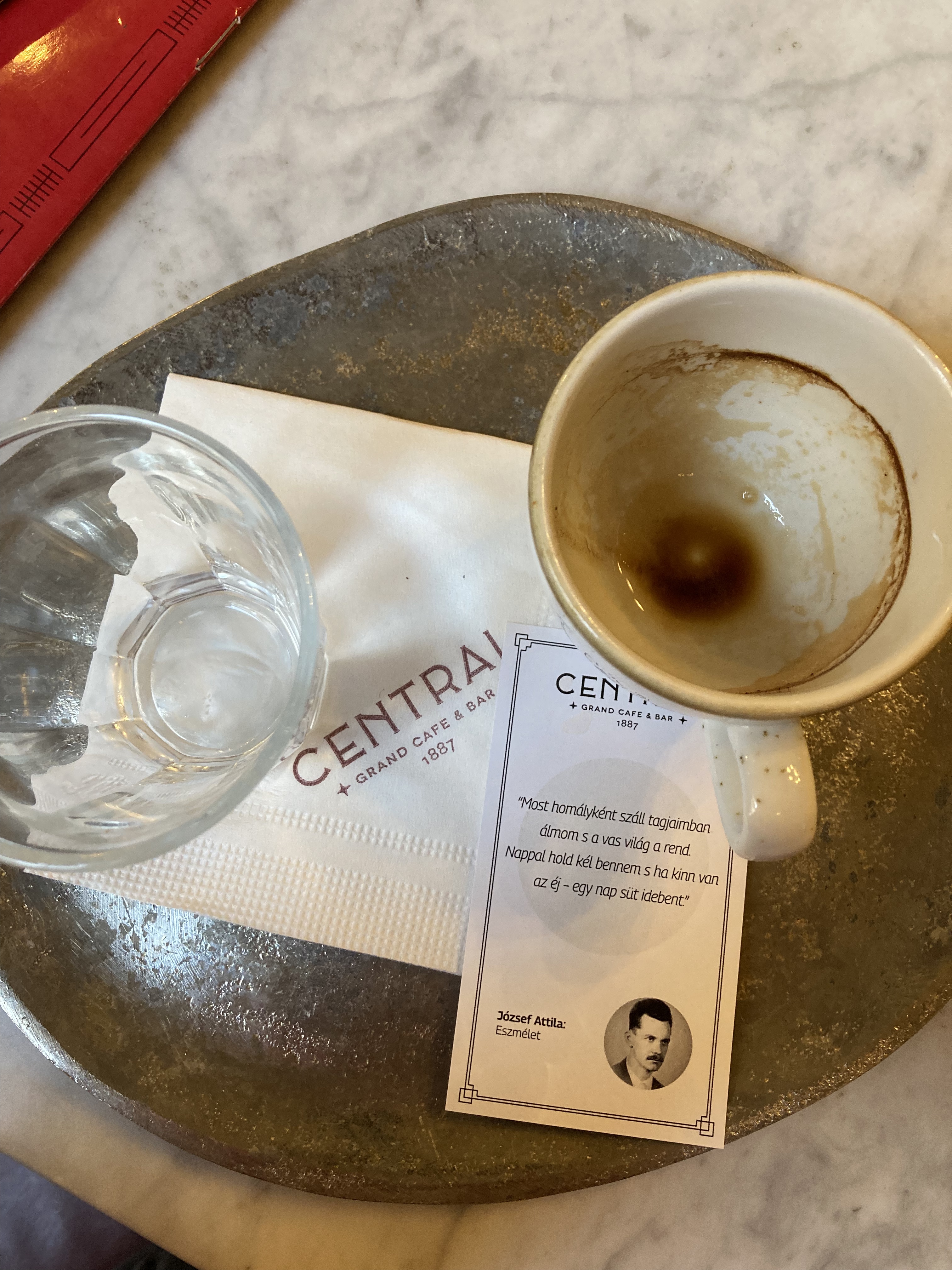 Vasárnap Juli kéri, menjünk el valahova a színjátszócsoporpja után, így itthoni tevés-vevés-nyúletetés-főzés-mosás után elviszem a családot a Centrálba, a gyerekek esznek főételt is, hadd nőjenek, mi csak desszertet és kávét – megdöbbentő nívó, cselekvéses-ráöntős desszert. Utána a PIMben megnézzük A tárgyak társasága című kiállítást írók relikviáiból.