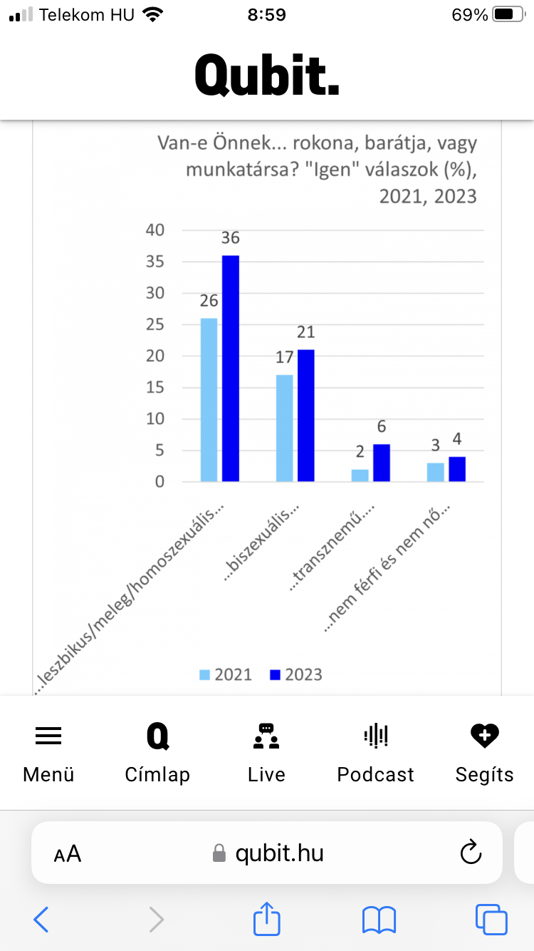 Már senki nem beszél külön homoszexuálisokról (noha ők a többség színesek között) – ez pedig módszeres fogalomátgyúrás eredménye. A fontos előzmény: Én már visszafelé jövök onnan. Mert valaha – a kilencvenes évek és kb. 2015 között – én elkötelezett liberális, jószívű támogató és hathatós hangadó voltam. Engem Antoni Rita drag showra invitált, és érzelmileg zsarolt, hogy miért nem vagyok nyitottabb. Soha nem érdekelt az ilyesmi, fiatalon sem. Egy tizenegy, egy négy- és egy kétéves gyerekem volt, teljesen egyedül voltam velük, és három héttel azelőtt halt meg a férjem. Ennyit az aktivisták érzékenységről. Eleve is ő doxxolt, a megkérdezésem nélkül kirakta a netre a nevemet: csakazolvassa = Gerle Éva. Én nem vállalok közösséget azokkal, megvonom azoktól a szimpátiámat, akiknek ez az LMBTQGHZH az elsődleges identitásuk, akik aktivistáskodnak, és akiknek rendben van, hogy a nemiséggel kapcsolatban furán megszállott férfiak nyüzsögnek, nőket szidalmaznak, követelőznek, nőnek hazudják magukat. Nem állok ki mellettük: ha támogatom a melegeket, Pride-ra megyek, akkor támogatom a névváltoztatást, a csonkításokat, a nők öltözőjébe nyomakodást (wranszneműek) – ez szétválaszthatatlan. A fogalmat ők változtatták ilyenné, ők gyúrták össze a mindenféle sükebókát egybe! A transzok ráakaszkodtak a melegekre, mert ők a népesebb csoport – de a sima melegek is iszonyatos dolgokat művelnek az áldozati szósz alatt. Nők számára és a gyerekek biztonságáért aggódóknak ijesztőeket. Senki ember nem zavar, engem viselkedések és tendenciák zavarnak, és nem értem, mások ezt miért nem veszik észre. Szóval “homofób vagyok” – és ennek a része, hogy az olcsó, ócska minősítgetéseik (kirekesztő! homofób!”) sem érdekelnek. Számomra ők leszerepeltek. Nyilván nem állok le olyanokat vitatkozni, akik ennyit sem bírnak végigolvasni (“hossszúúúúú…!”) és felfogni. 2023 decemberében a Háttér Társaság és a körülötte sürgölődő értelmetlen életűek, liberálisok (?), csupa pszichológus nyilvánosan alázott meg egy publikus eseményen, amelyre meghívásom (visszaigazolásom) volt. Ötvenen egy ellen, és élvezték. Okuk nem volt, én csendben és békésen ültem, merő gyűlöletből rámhívták a biztonságiakat. Játszották az inkvizítort. Előrángatták a blogot és kis szertartást rögtönöztek, hogy menjek onnan (egy nyilvános eseményről, egyetemi épületből), pedig erre semmilyen jogi alapjuk nem volt. Erről itt írtam: https://csakazolvassa.hu/2023/12/14/nem-erzi-magat-biztonsagban-mit-gondolok-az-aktivistakrol/ Két olyan csoport van, amelynek a szexért való lihegése, kielégülése, izgalma kedvéért lábbal tiporják nők, lányok érdekeit, kéréseit, biztonságát és méltóságát. Az egyik az ún. patriarchális férfiak, de mivel nem létezik nem-patriarchátus, még a skandinávok is csak picikét korrigáltak a súlyos igazságtalanságon, szóval: a heteroszexuális férfiak. A másik a transzszexuális (magukat nőként azonosító) férfiak csoportja (és sajnos, velük szövetkezve a melegek is). Őbennük az az aljas, hogy ugyanazt akarják: erőszakoskodni, kielégülni mások szenvedése árán, csak még játsszák hozzá az áldozatot, és mindenkit megbélyegeznek, aki kimondja, hogy a biológiai nem igenis számít és fontos választóvonal. Érdemes megnézni, hogyan vall erről a meleg, HIV-pozitív Bereczky Tamás. Nem ám valami vallomásos műfajban, hanem szakértőként egy konferencián, amelyet 2022 januárjában tartottak a chemsex ( = bedrogozott orgiák) témájában. Melegnek lenni szégyen, kín, magány, és a chemsex arra kell, hogy “legyen valami jó”. Szét is csapják magukat, gyakran belehalnak.
