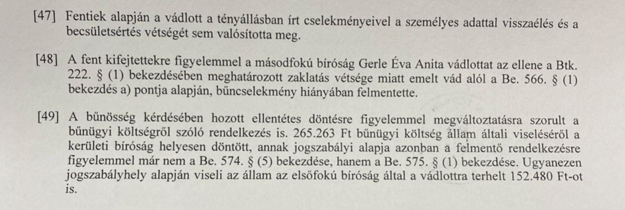 egy nagyon hosszú ügyleírás, indokolás, (jogerős) ítélet 47-49. bekezdése. a lényeg, hogy valaki megsértődött, és a saját mocskát akarata eltüntetni, így engem vetett oda négy évre a bíróságoknak.