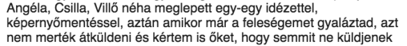 Nem gyaláztam a feleségét, nem tudok a feleségéről semmit. De írtam a kertvárosok pokláról. És most nagyon mutatja ő is, Lelkes Villő is, tolja elém (elküldi a képernyőfotót), hogy mennyire összejöttek és hogyan utálnak engem együtt.