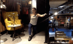 Felkötöttem egy hordozókendőt a galériára (a biciklikerék fölött az a fekete). Fejjel lefele pózok, Julis odavan! Nekem is hiányzott. Nyúlia ott ring-pörög benne, és közben szól a dzsessz. Miért nem előbb? Ott kerülgettem ezt a kendőt.
