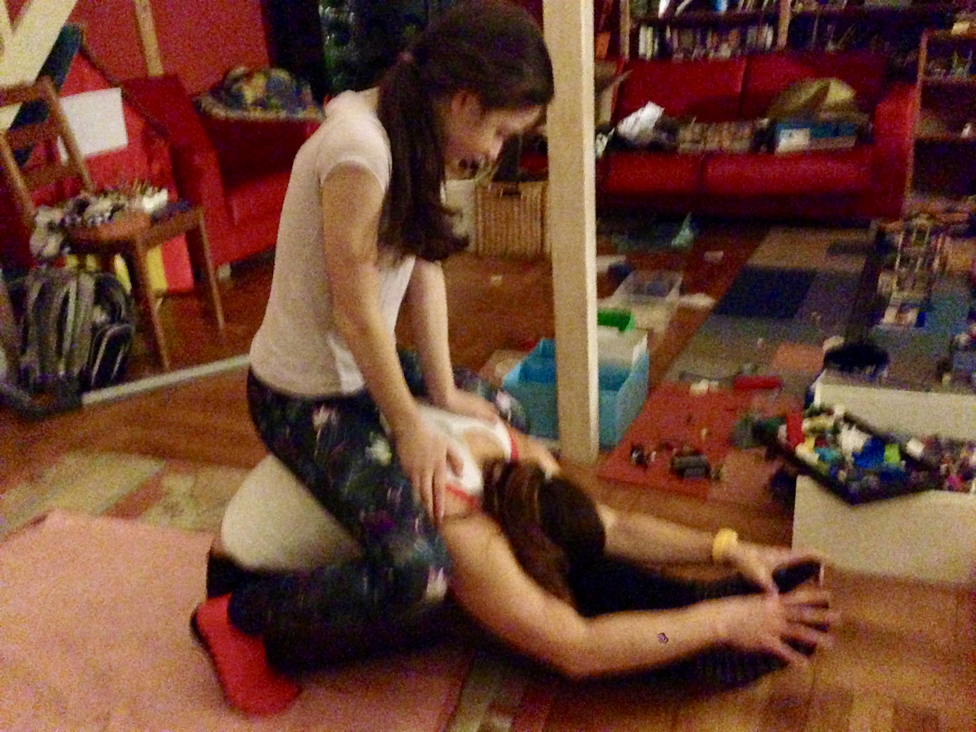 Amit még gyakoroltam, nagyon kötött a combom, magam alá húzott sarokkal (sarkamon ülve) hátraereszkedni, hanyatt.