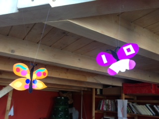 Egészen fellépek a sámlira, 50 centire, így a hajlító terhelődik. Súlyzóval, a vállamat ma békén hagyom, de lábat lendítek. 33+70 ism. Előtte vágtuk ki, dekoráltuk és aggattuk fel a lepkéket!