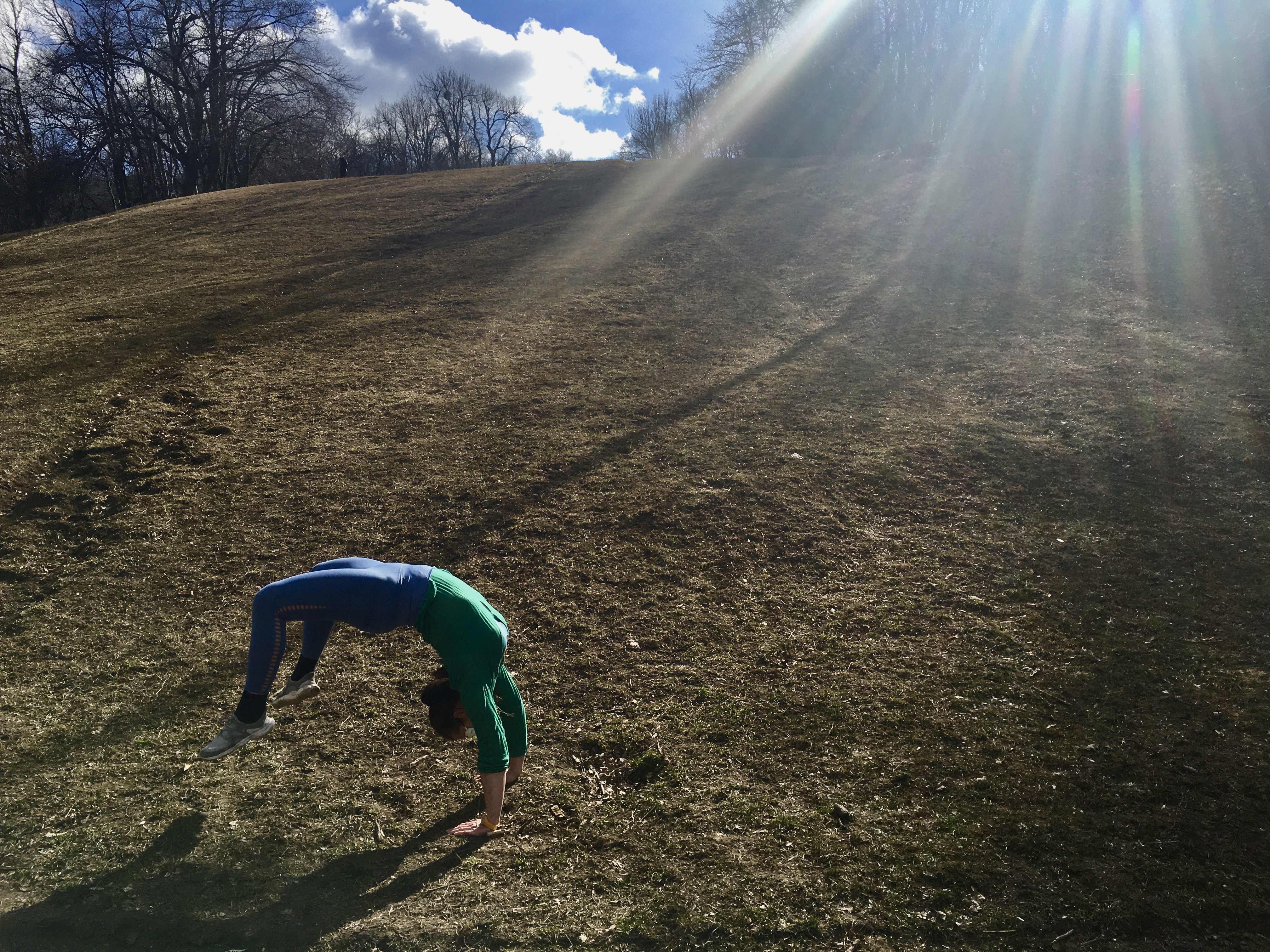 Május 24. Azt hittem, elvesztettem a hátrabógni képességemet: nehéz és derékban merev vagyok hozzá, de pár perc fotósom-motiválta próbálkozással visszajött az.