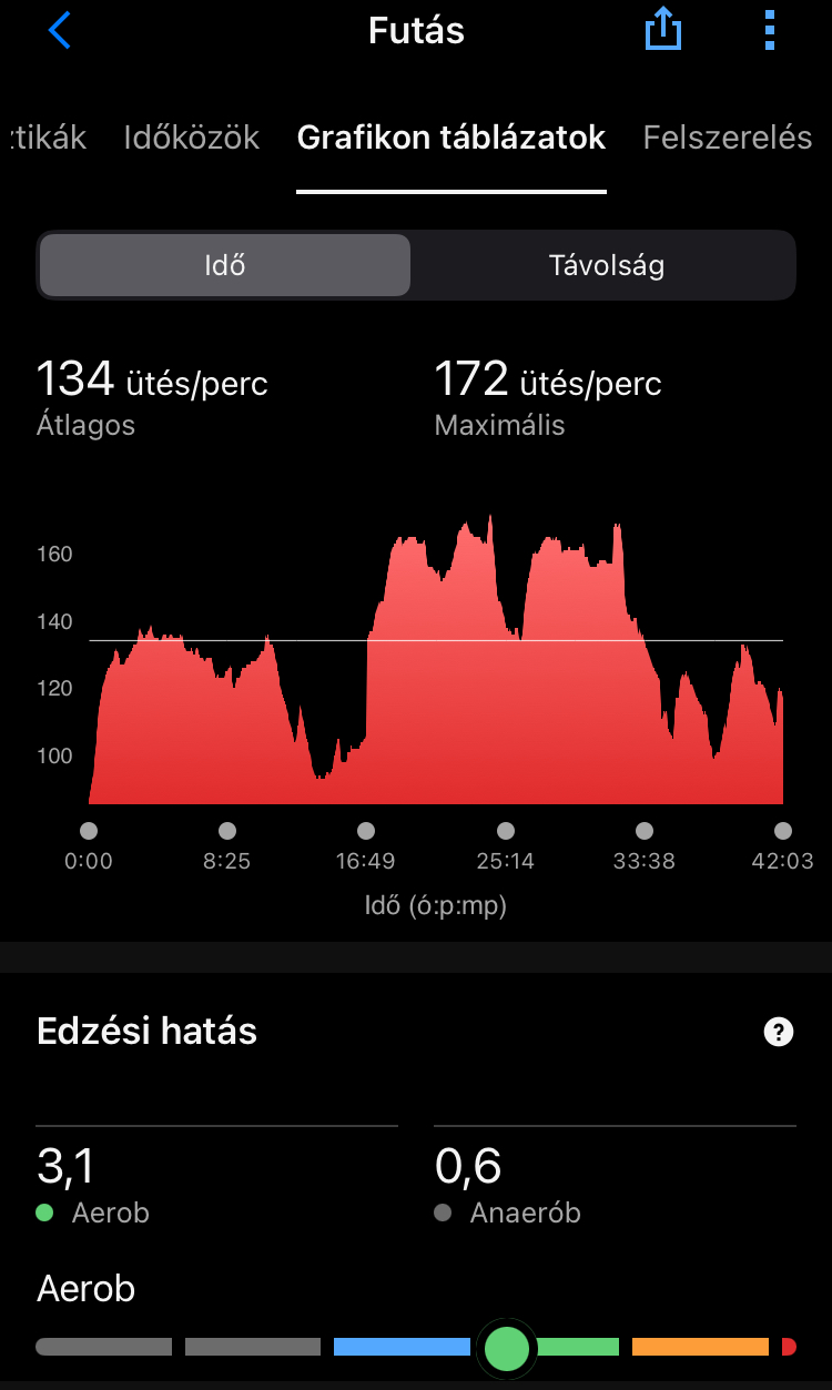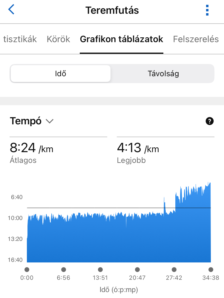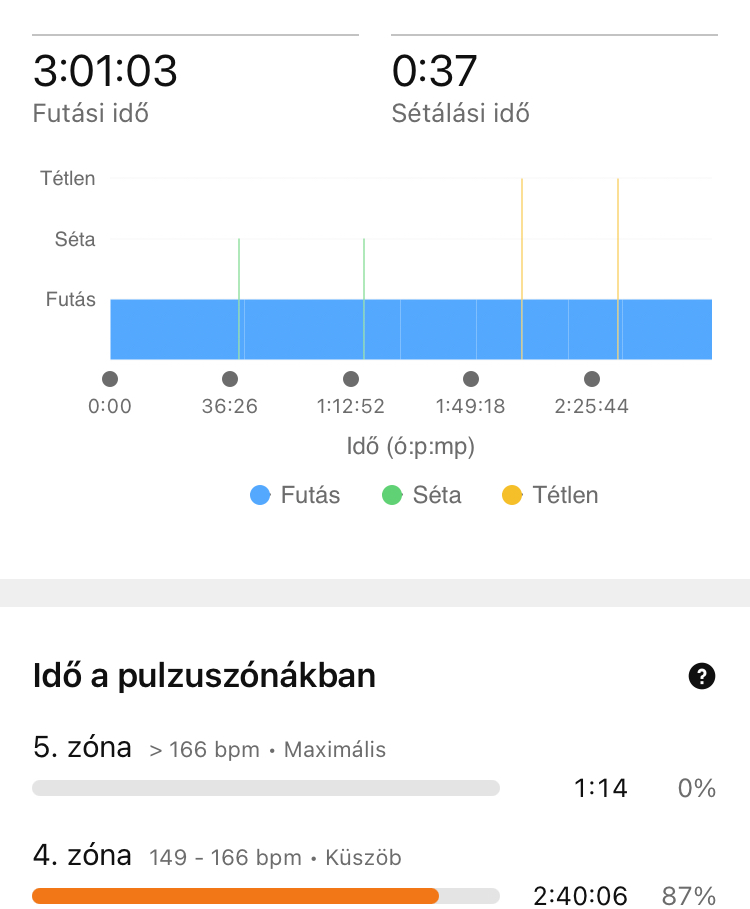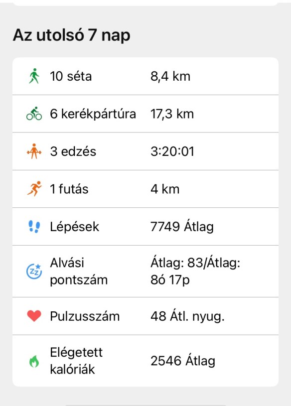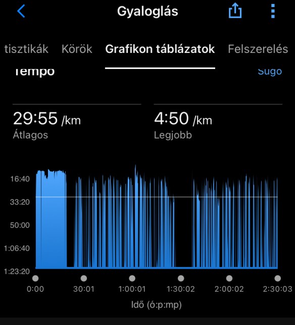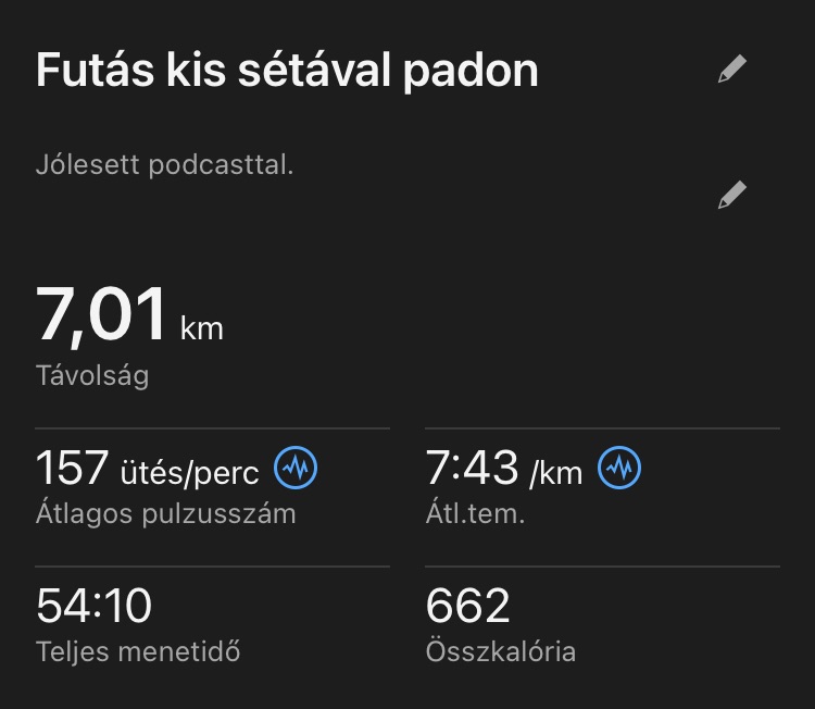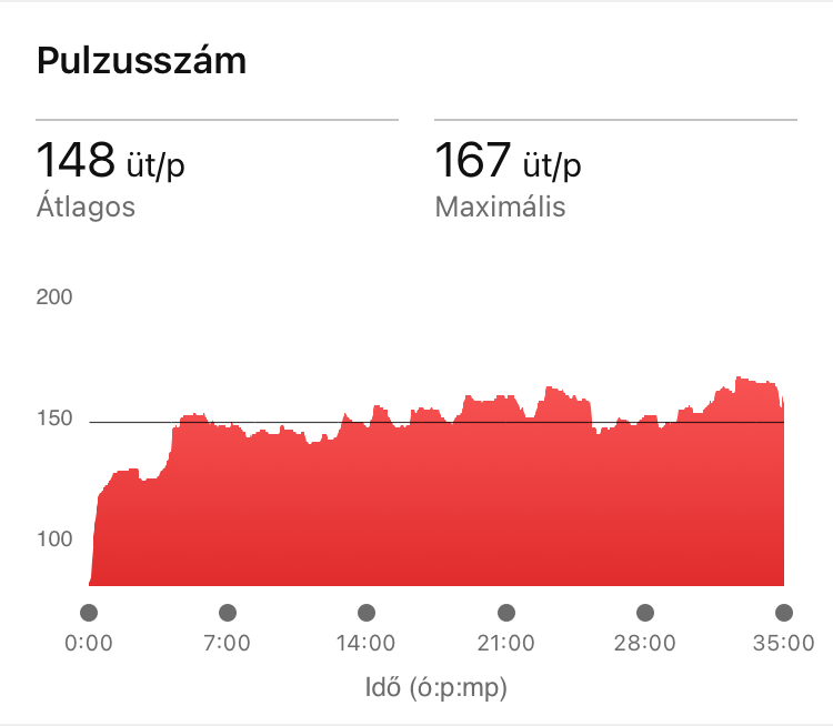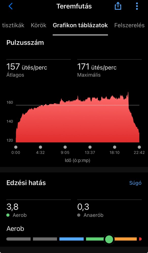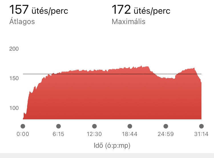 A vége 2 km futás, 7 perc 14-es tempó, zárás miatt hagytam abba, 9:59-kor léptem ki. Csodálatos érzés.