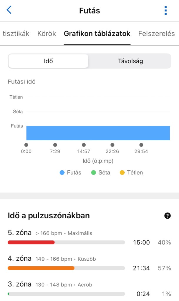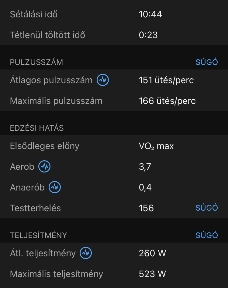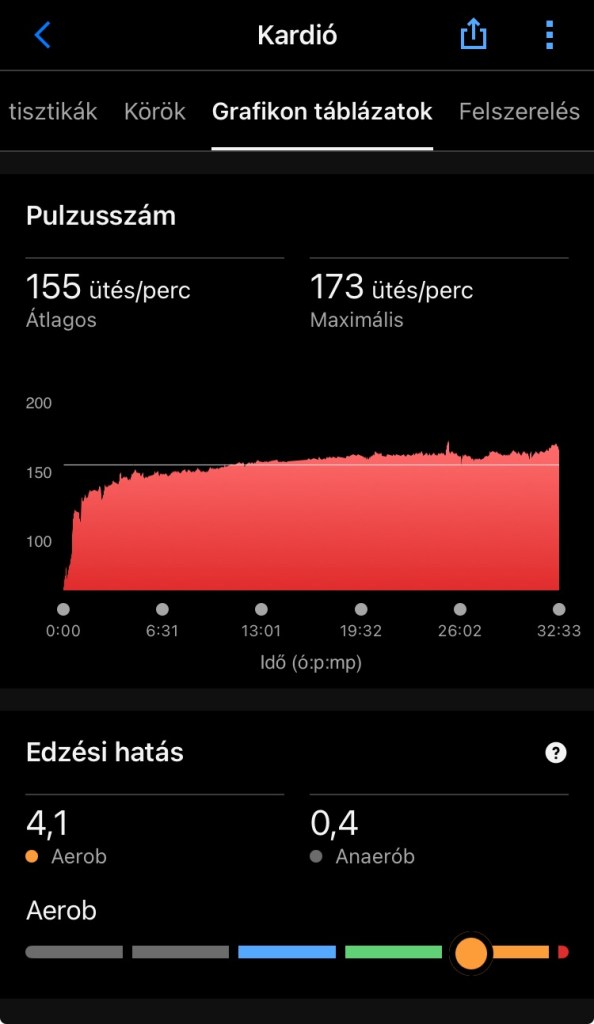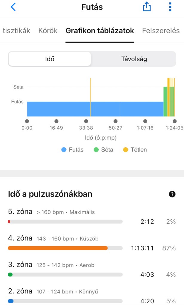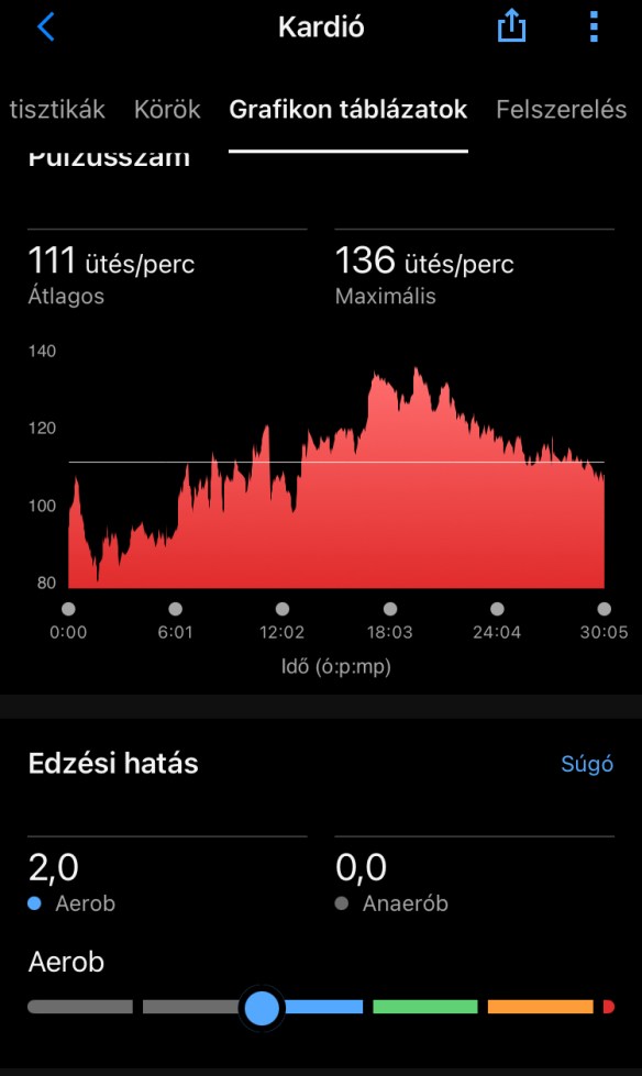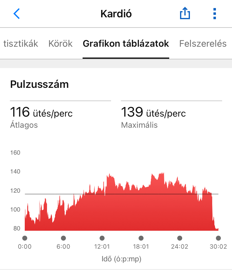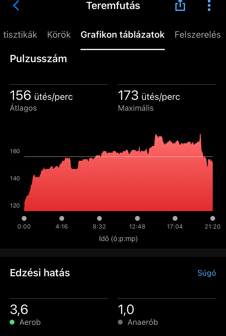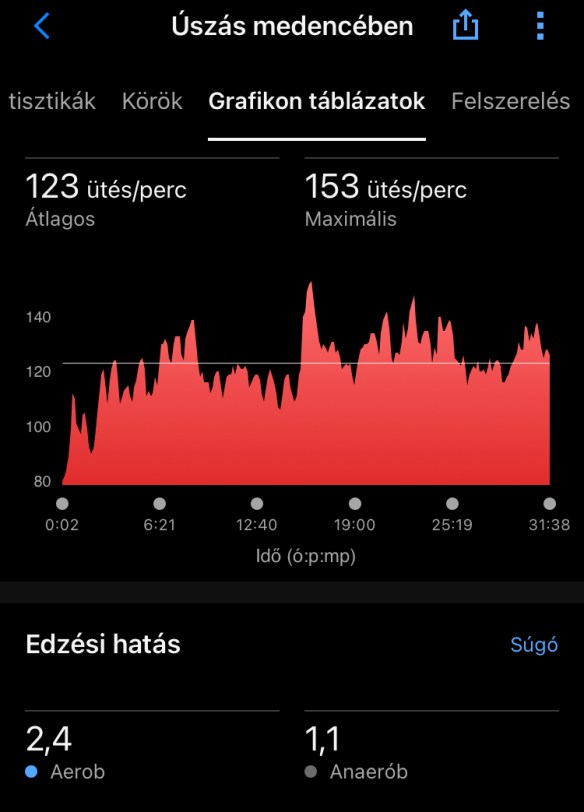 A vége 2 km futás, 7 perc 14-es tempó, zárás miatt hagytam abba, 9:59-kor léptem ki. Csodálatos érzés.