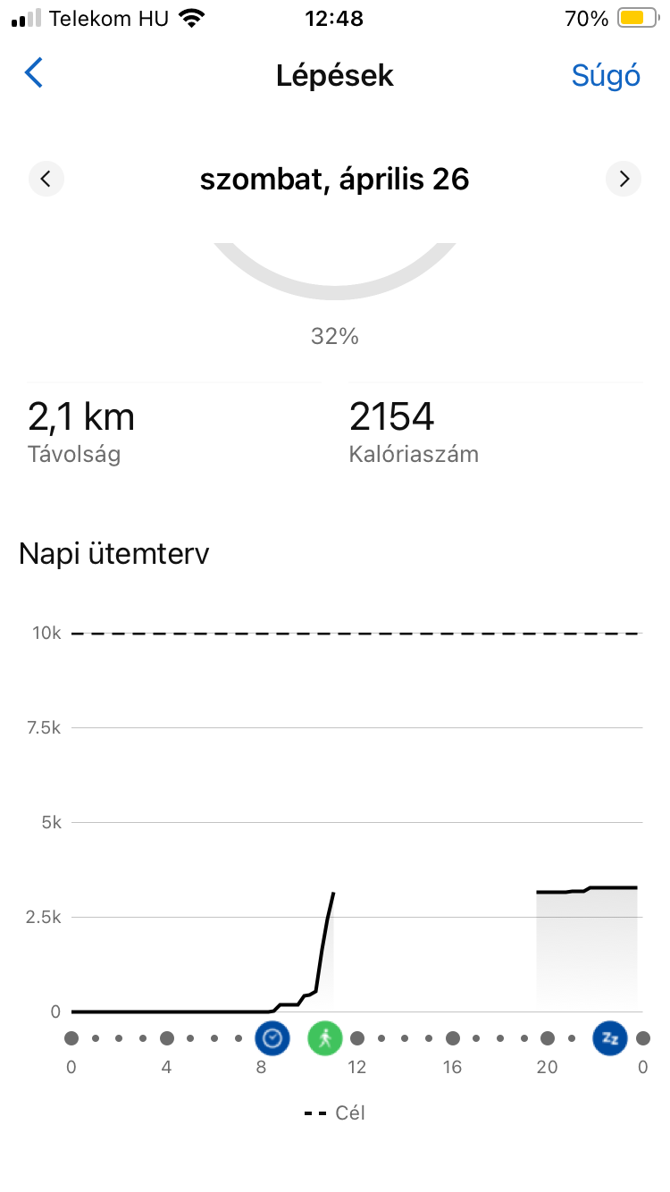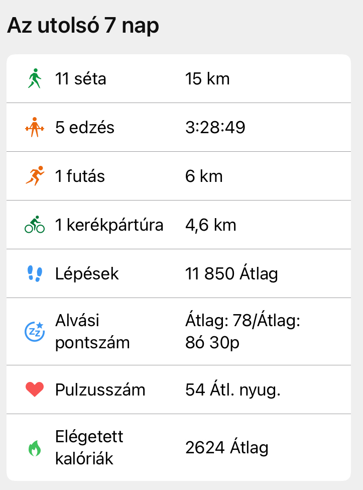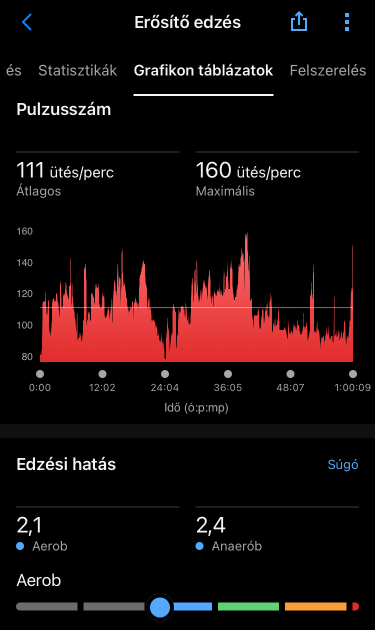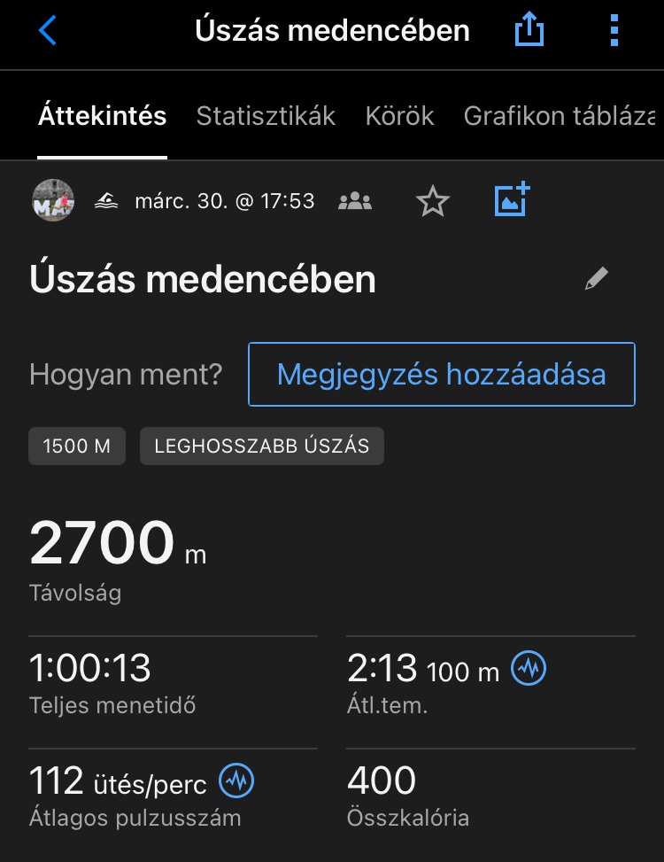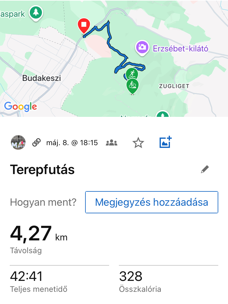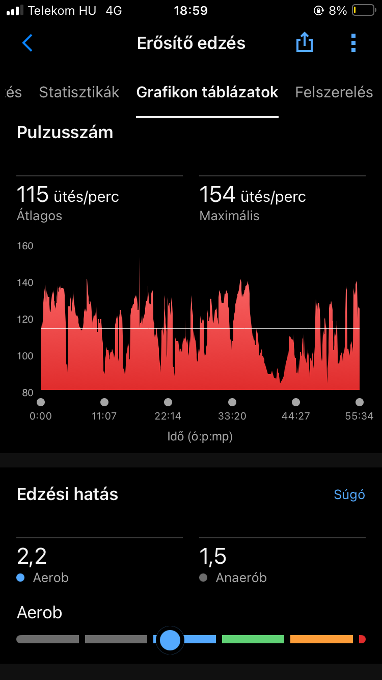 A vége 2 km futás, 7 perc 14-es tempó, zárás miatt hagytam abba, 9:59-kor léptem ki. Csodálatos érzés.
