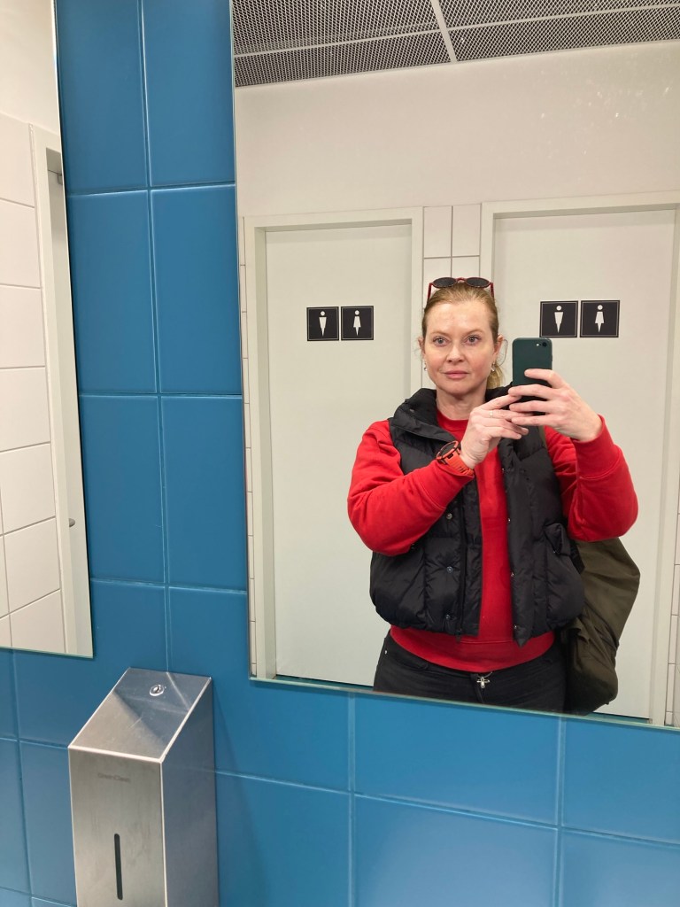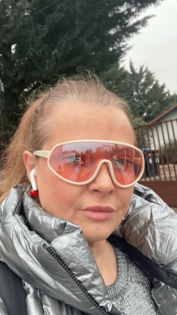 Nem lettem kezelésjunkie, nem kell még simább, most elégedett vagyok az állvonallal, tekintetem nyíltságával, szemhéjammal, szemöldökívemmel, szem alatti résszel, szájzuggal, száj melletti bőrminőséggel, általában az arányaimmal, tudva, hogy durván középen domborít a kép. Gyanítom, milyen lenne (romos, lefele tartó), ha nem kezdtem volna bele a tömörítésbe. Nem kell sem olvasószemüveg, sem “divatos” statement, ráncokról figyelmet elvonó szemüveg (mindig röhögünk, hogy minél szottyadtabbak a béna ruhákat “outfitnek” nevezők, annál hangsúlyosabb, extravagánsabb keret kell, férfiaknak plusz színes ing, zokni, kravátli toka ellen, élemedett, molesztáló íróknak karimás kalap, esetleg micisapka, jaj). Kontaktlencsém van, évek óta ugyanaz a dioptria. Nem kell műpilla, sötét rúzs, műköröm, arcműtét, képmódosítgatás.