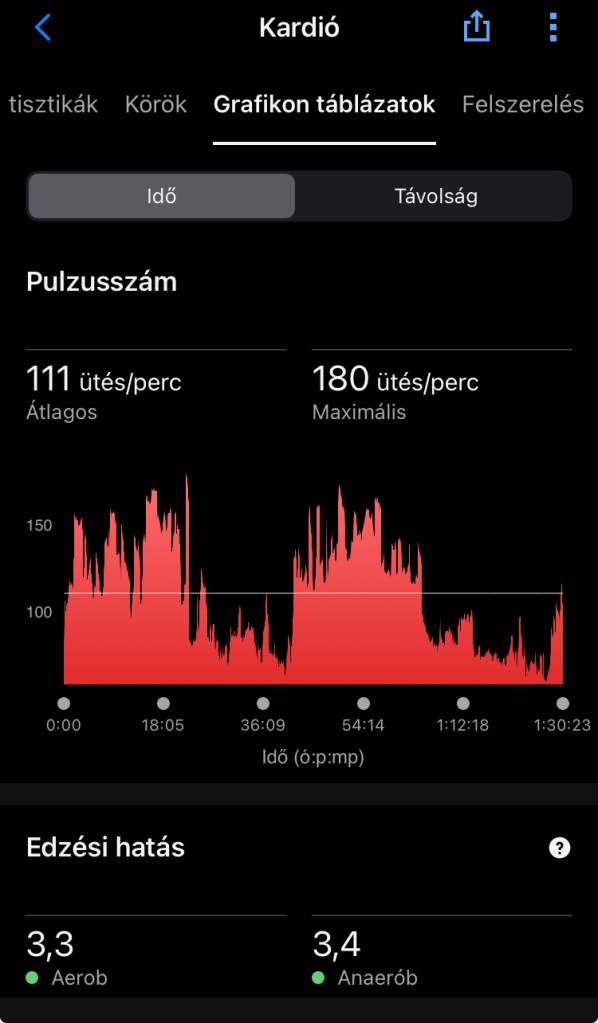 Ettől ilyen lett a pulzusgörbe és a tempó: