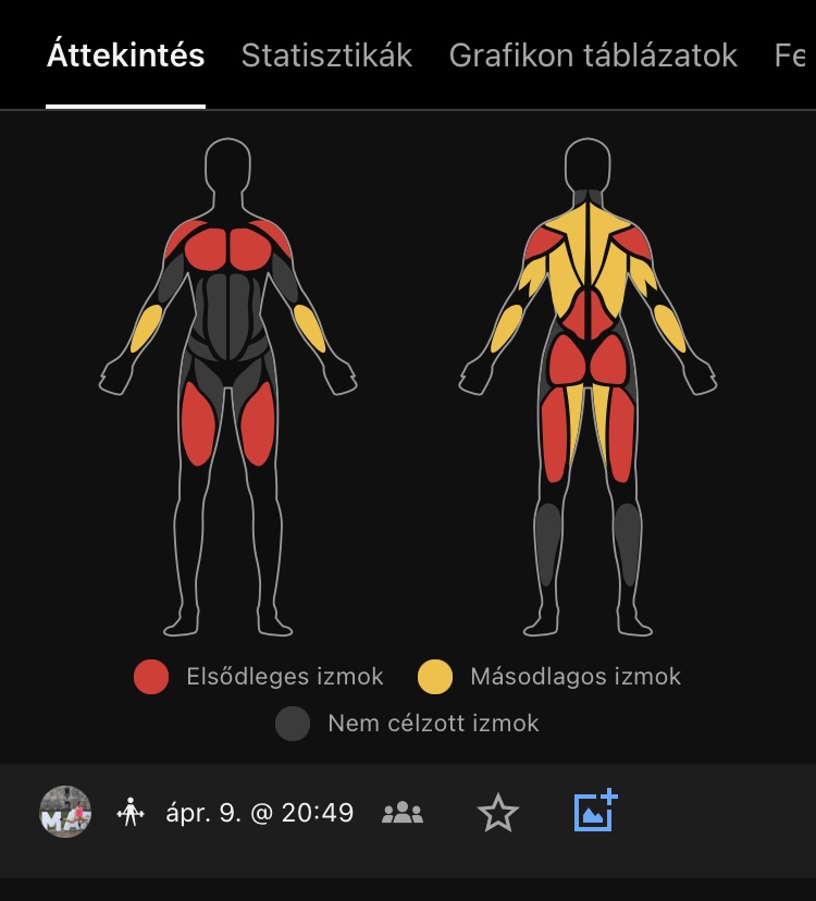 Csodás vállból nyomás, fekve nyomás, tárogatás, bicepsz, kiszúrás padon (hasgyakorlat) öt körben, és el nem mozdulok a padról, tehát nem a terv szeriont kombinálom a gyakorlatokat, mert nem akarok több vitát. Kivonom magam a zajokból amerikai műsor hallgatásával. A végén külön egy kis fenékgyakorlat az álló combszétnyomó gépen, aztán a yes-no machine, 4×10 ismétléssel nagy súllyal külső és belső combra is. Ezt érdekesen kevés kalóriának, pulzusnak és intenzitásnak méri a Garmin (a teraszon járkálást meg soknak). Mindegy, az izom épül, tudom a céljaimat. Nemsokára futni, úszni fogok!