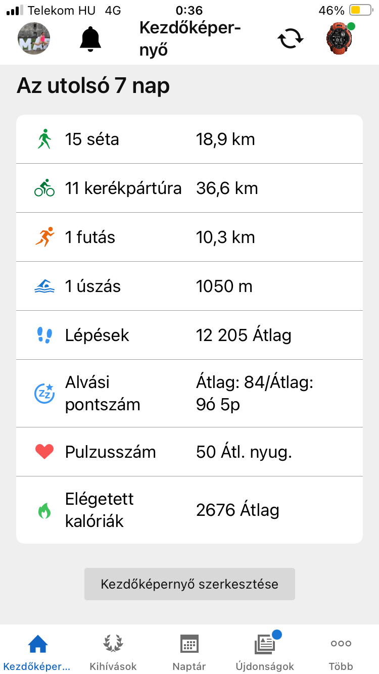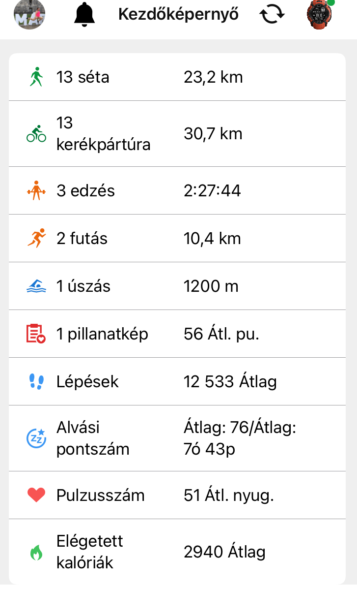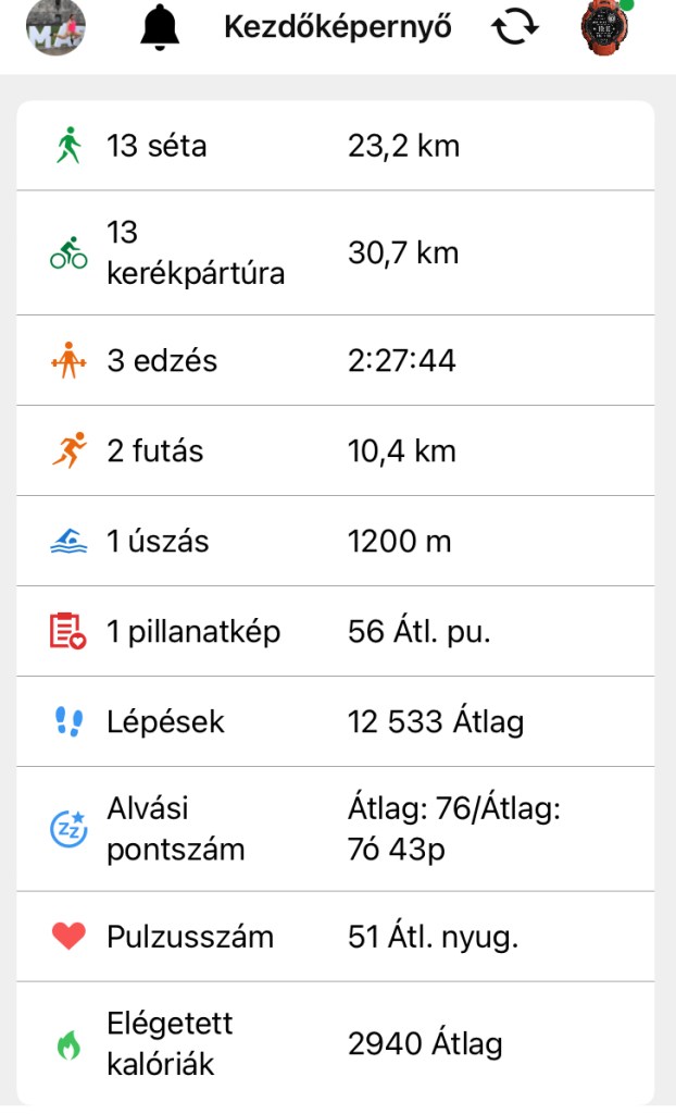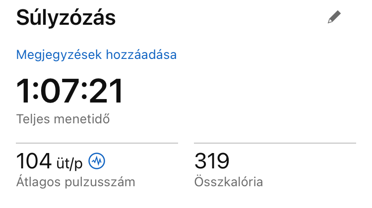 Hetem. (Az öt edzésből kettő szauna, ezt kardiónak indítom a pulzus miatt, de edzőterminek veszi.)