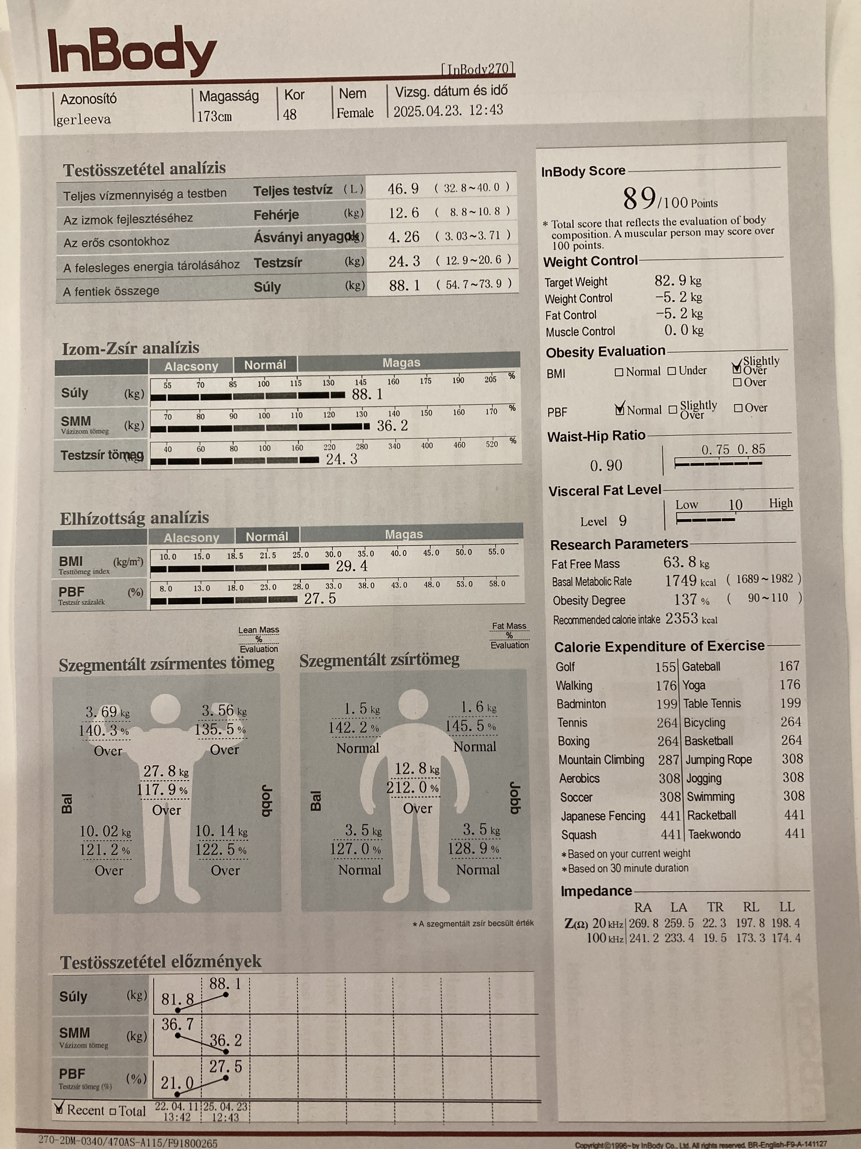 A BMI-m még mindig 30 alatt. 😀 Szerény érdem, hogy “túlsúlyos” vagyok csak. A legjobban akkor voltam ruhákkal, erőnléttel, testérzettel, amikor 26-os volt, az izomarány miatt. Nem tudom, megvan-e még az izomzatom, de úgy érzem, a nagyja igen. 15 kilóval vagyok több, mint a fénykorban, a heti hat edzések és gyötrő futópadozások idején és 10-zel, mint 2022 tavaszán. Jelen ambícióm egy bizonyos farmer, és a sínadrág, mert úgy néz ki, idén is eljutunk.