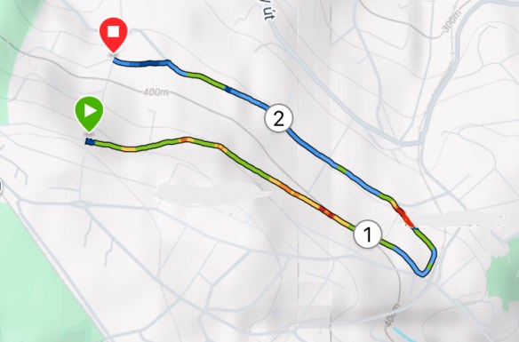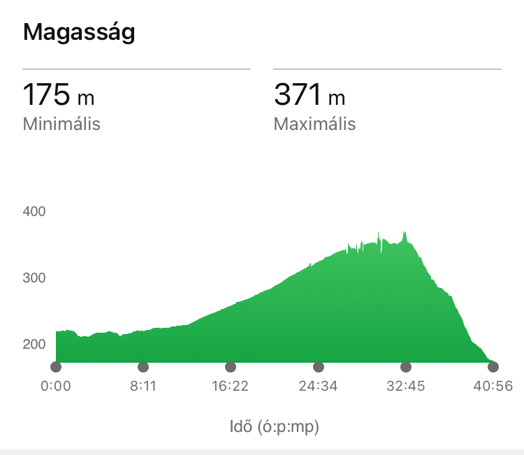 Húsz perc séta, hogy csak erdő legyen, utána 42 perc futás előírás szerint, ez most három tízperces “gyors” (6:30-as) futást jelentett, előte-utána-közötte 8:15-ös kocogással, csak nem síkon, hanem terepen futottam, így a tempó nem mindig volt annyi (gyorsabb is, lassabb is volt):