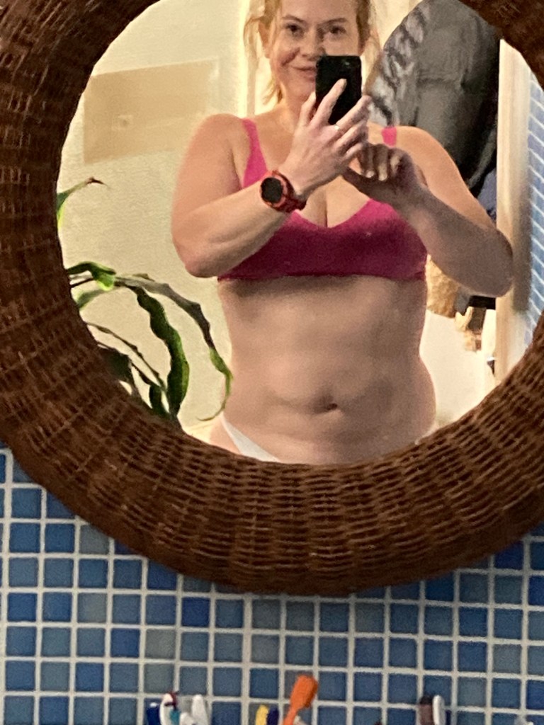 Szóval amikor naponta és 2-3 órákat edzettem, tökéletes testem volt. Úgy értve, hogy én ilyen testet akarok, nincs semmi komoly részlete, amelyet megváltoztatnék. Vagyis az én adottságaimmal (életkor), hétköznapi emberként, csak spontán edzésekkel olyan lett, ami nekem tetszik, aminél nem akarnék se vékonyabbat, se más testtartásút, se izmosabbat. Ez az, amit minden apró részletével együtt megbecsülök és büszkén hordok, ez a sportos állapot az eszmény. Szerintem 35 éves kor fölött aki nem edz, éspedig valóban, heti többször, intenzívet, az mind felpuhul görbe lesz, megcsúnyul még akkor is, ha a szerencsés adottságaival korábban formásnak tűnt. Az “ennyi idősen” és a “három gyerek után” az én esetemben szerénykedés, mert ezzel húszévesen is kiegyeztem volna. Nem volt szexiskedő eszményem, nem hódítani akartam a testemmel, nem volt valuta az alakom. De tudom, hogy másnak más forma tetszik, és ők azon dolgoznak (vékonyság, ráoperált testrészek.