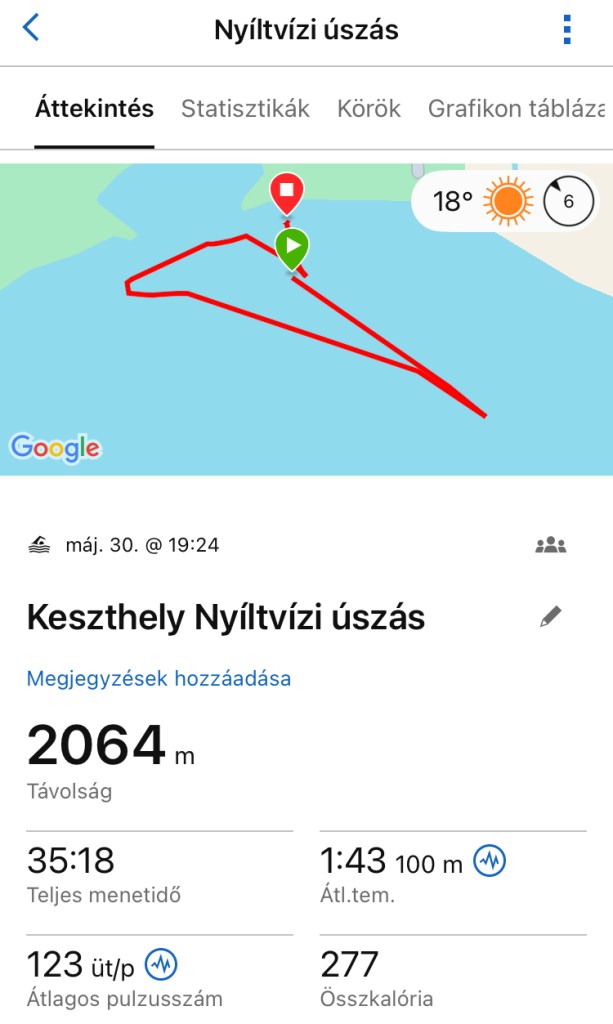 úsztam 18525 métert, általában uszodában, de augusztusban a Fertő-tóban, júniusban és szeptemberben a Balatonban,