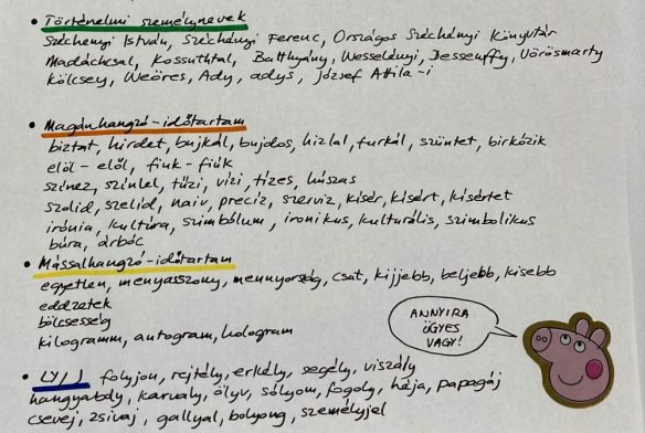 - színkód, (megj.: ötletszerűek a kiemelő színek, csak az a cél, hogy mind különbözzön)